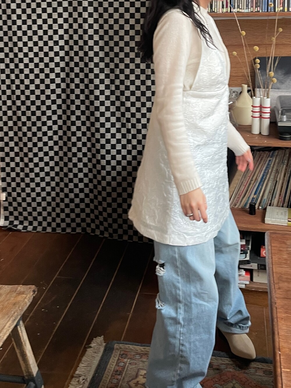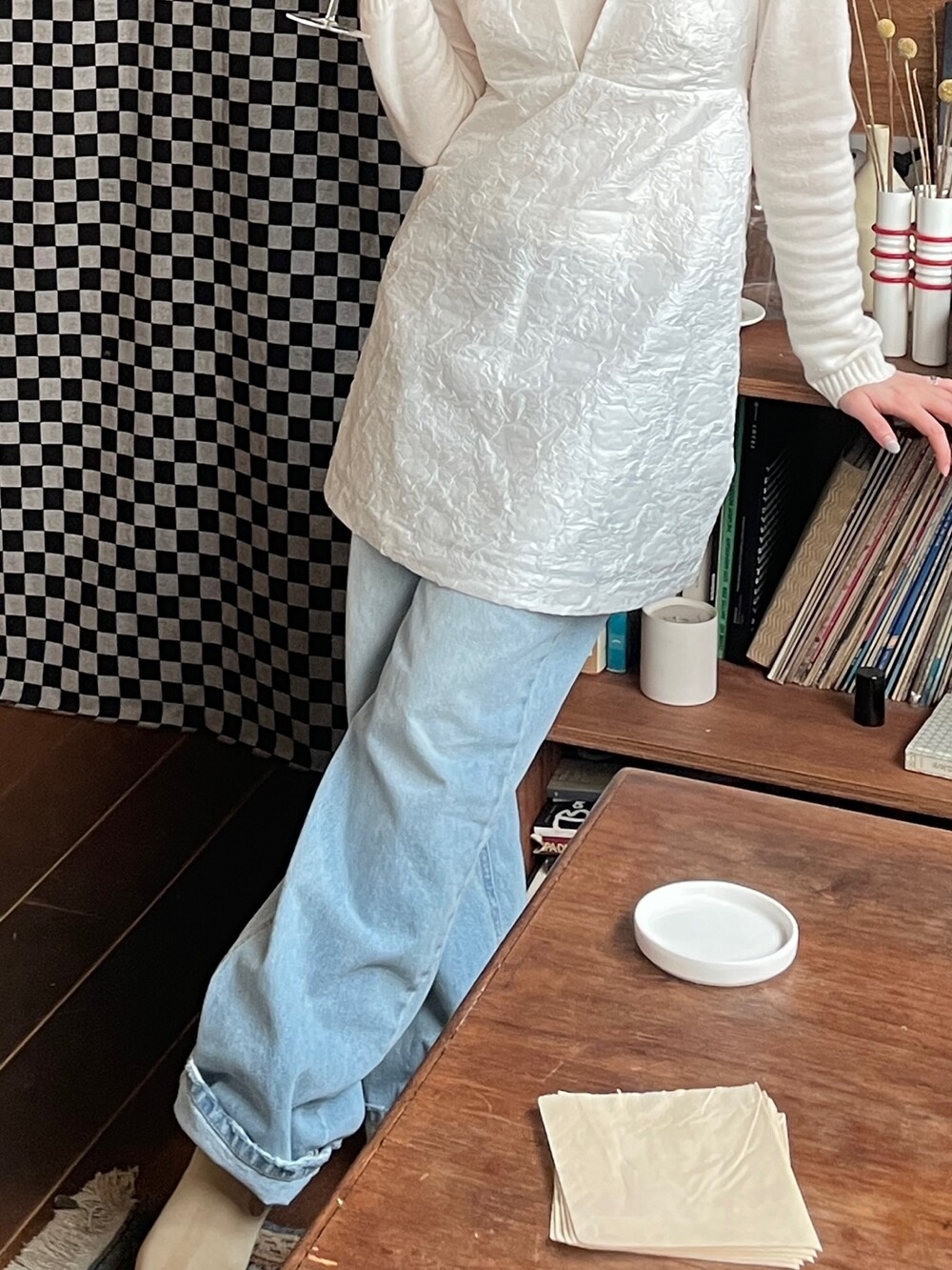 height 160cm / top 55 (S) / bottom 26 (M) / shoes 235mm