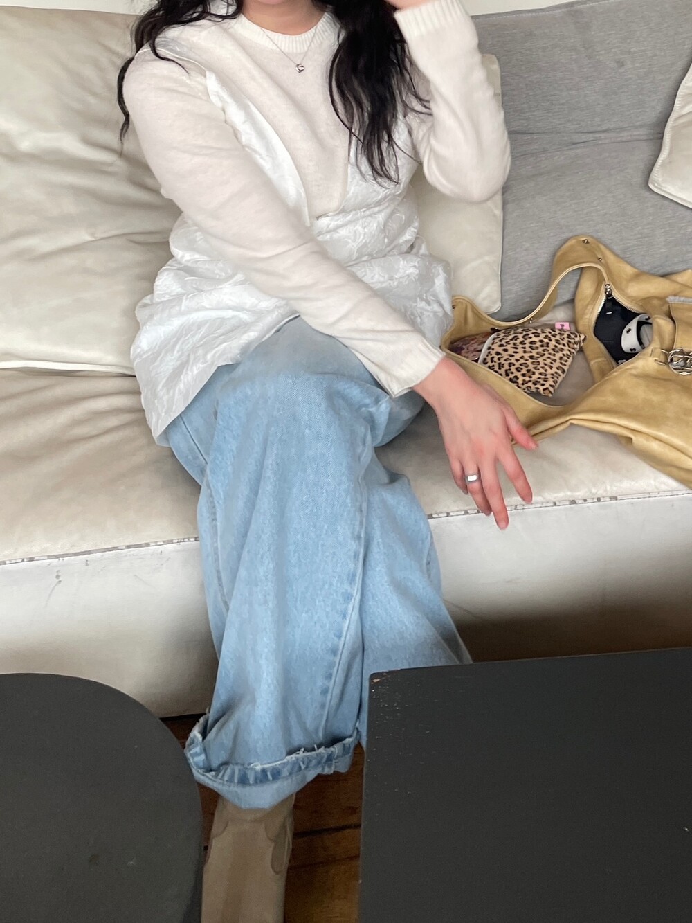 두께감 얇음 / 비침 약간 / 신축성 없음 / 안감 있음