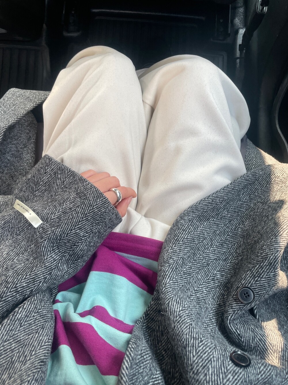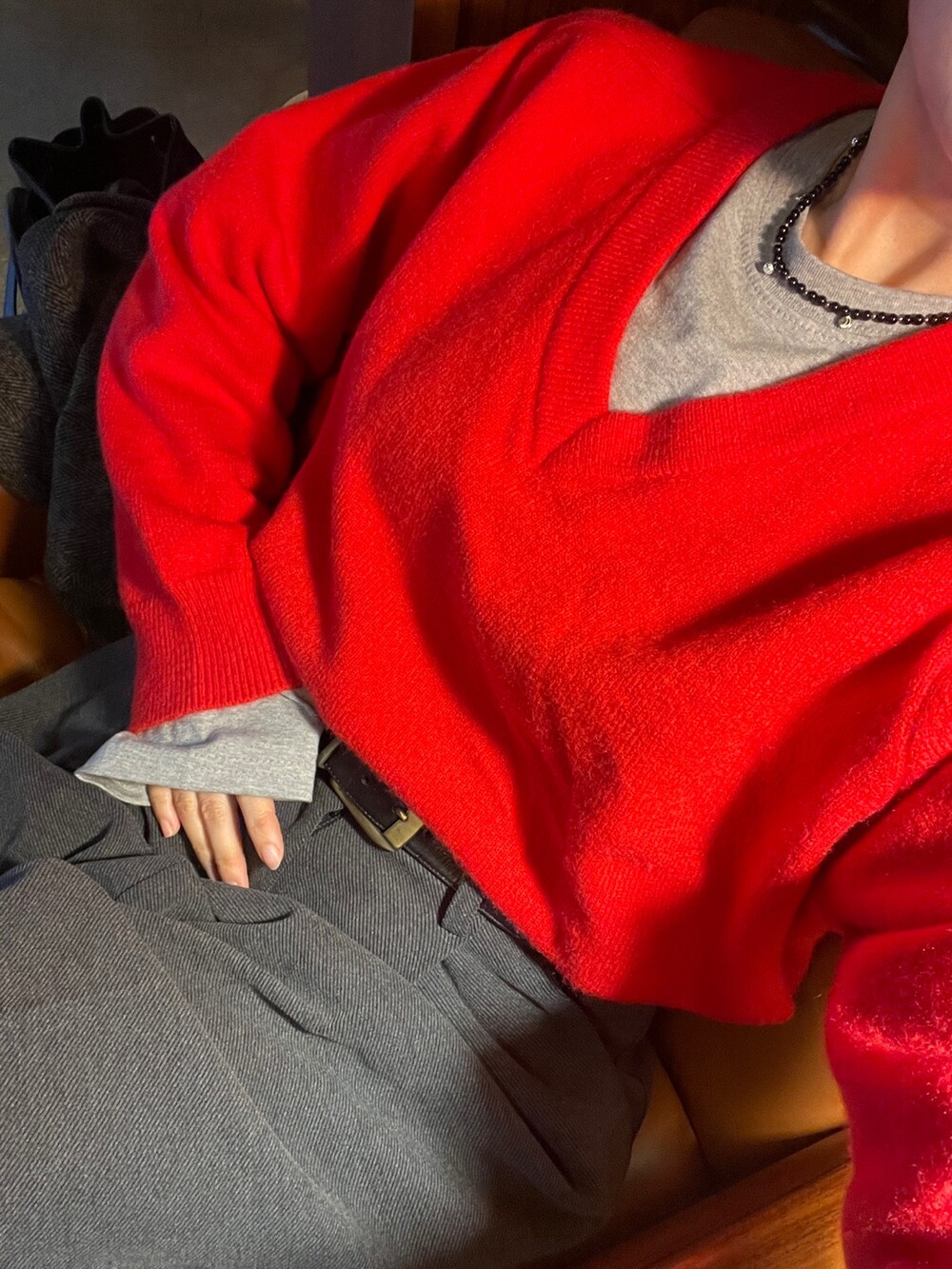두께감 두꺼움 / 비침 없음 / 신축성 약간 / 안감 없음 (기모)