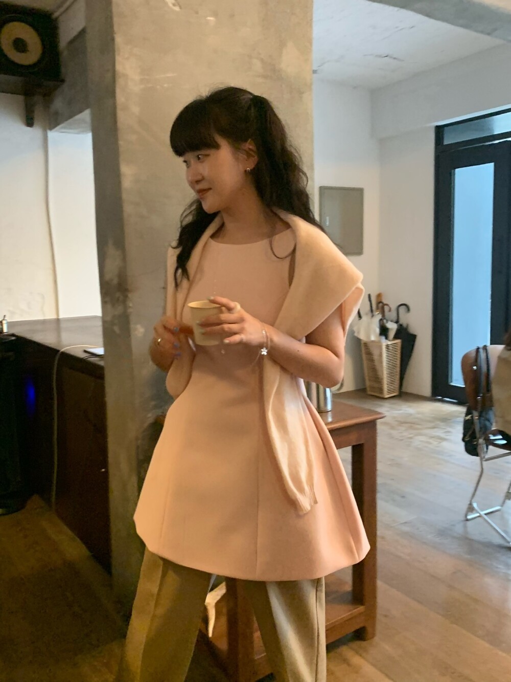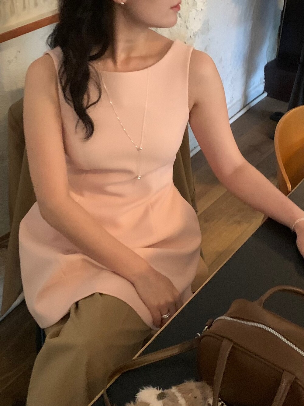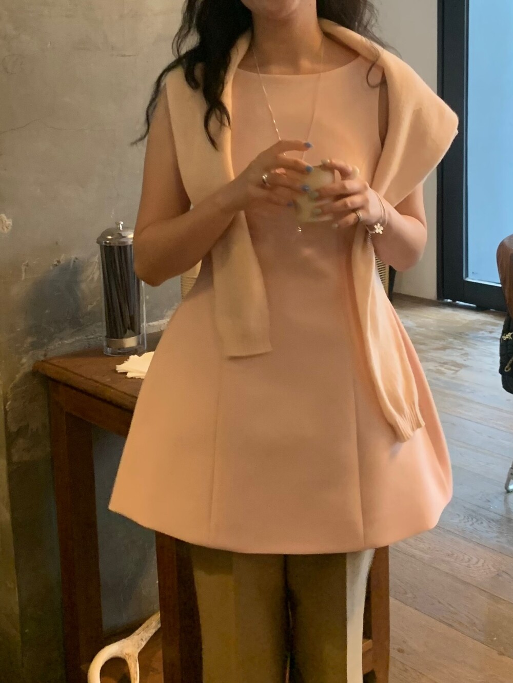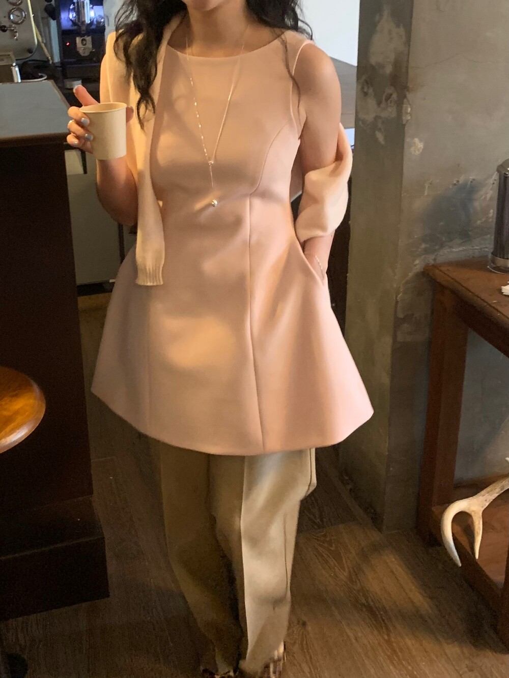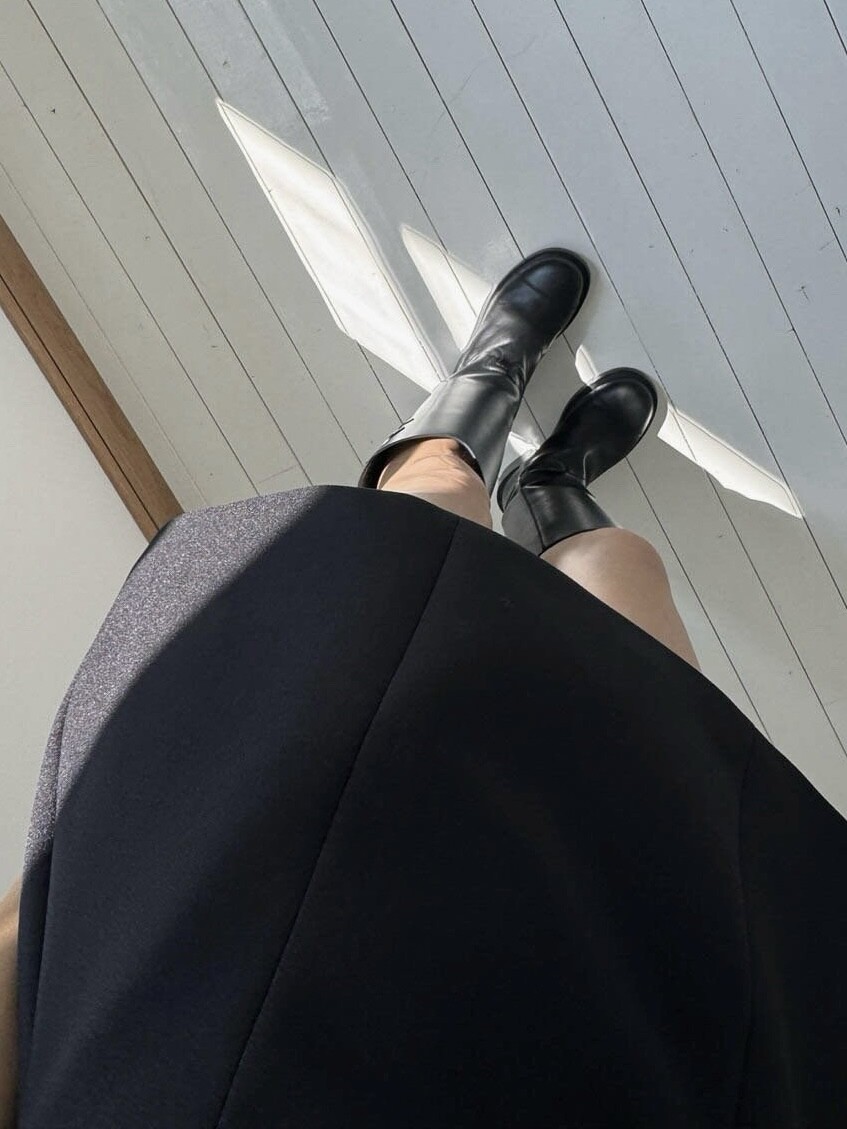 두께감 보통 / 비침 없음 / 신축성 약간 / 안감 있음