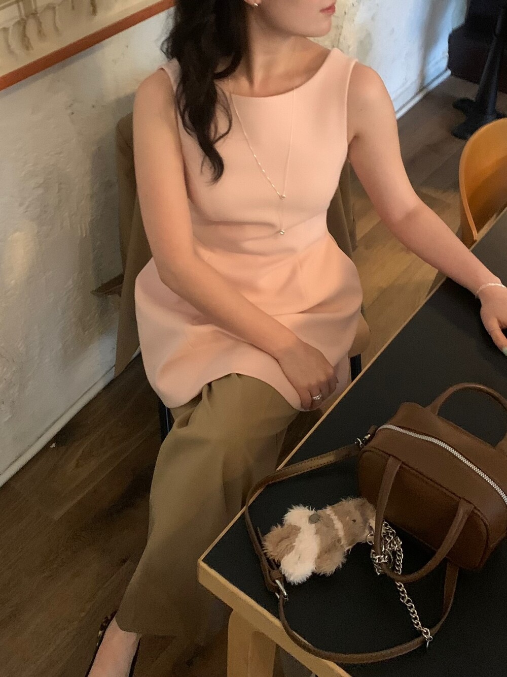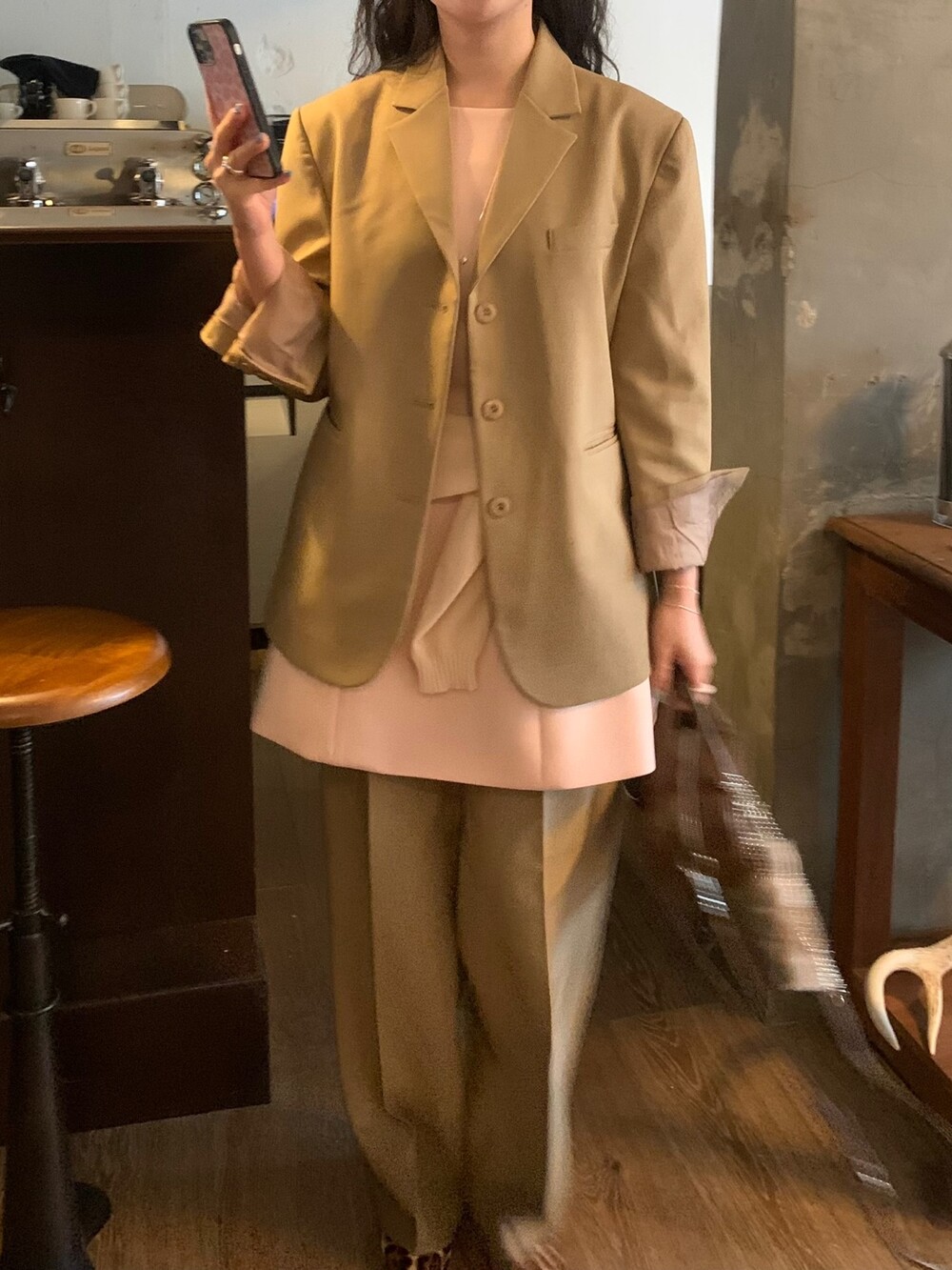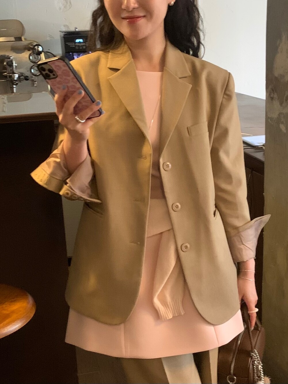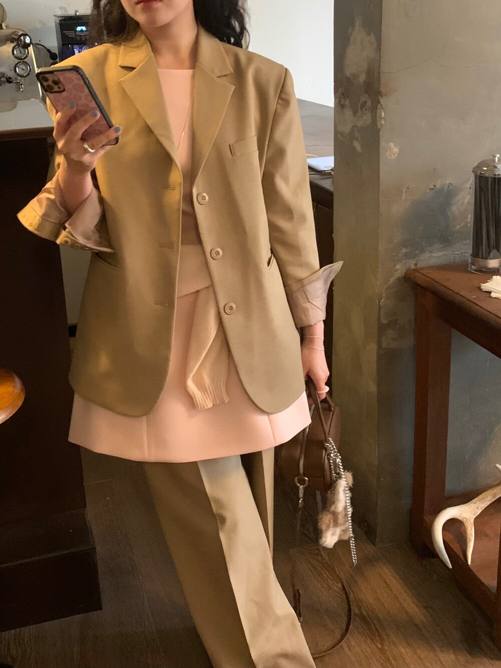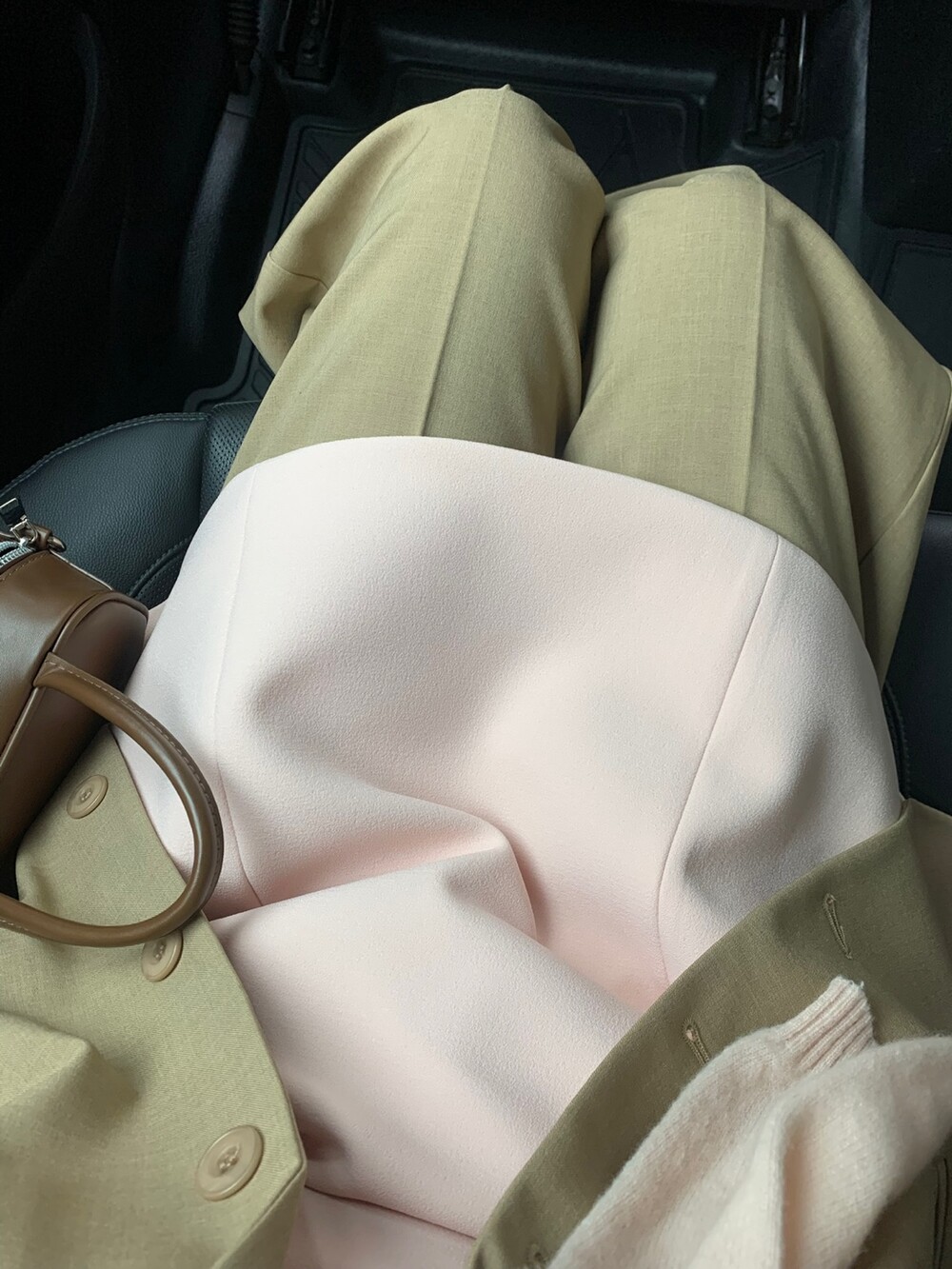 두께감 보통 / 비침 없음 / 신축성 약간 / 안감 있음