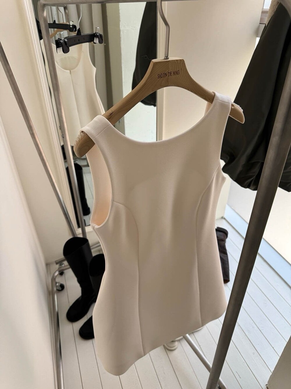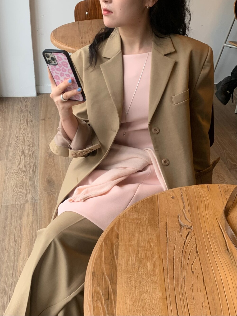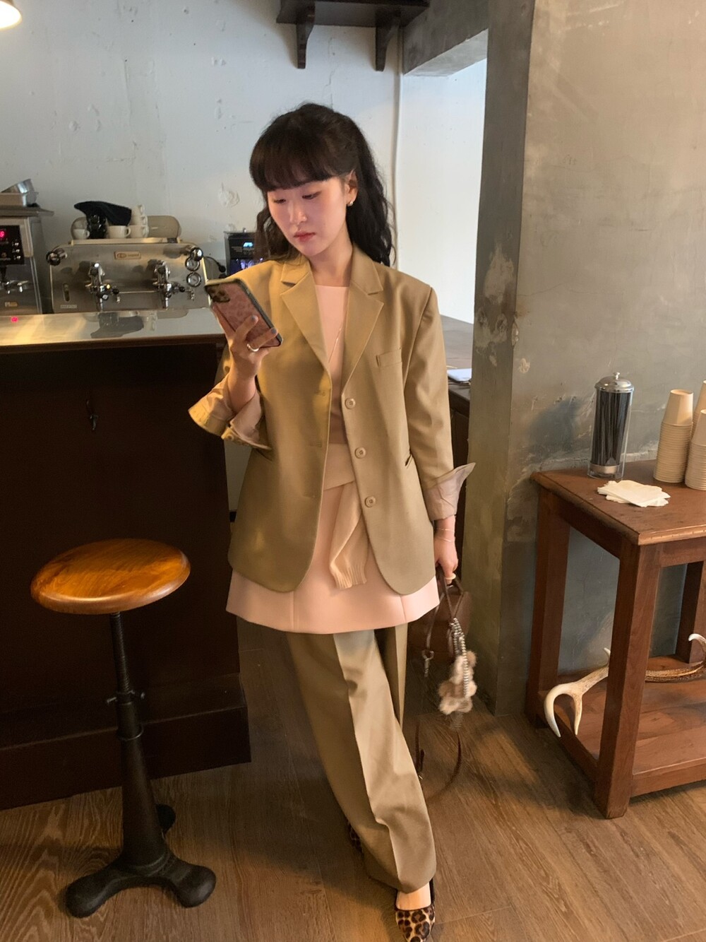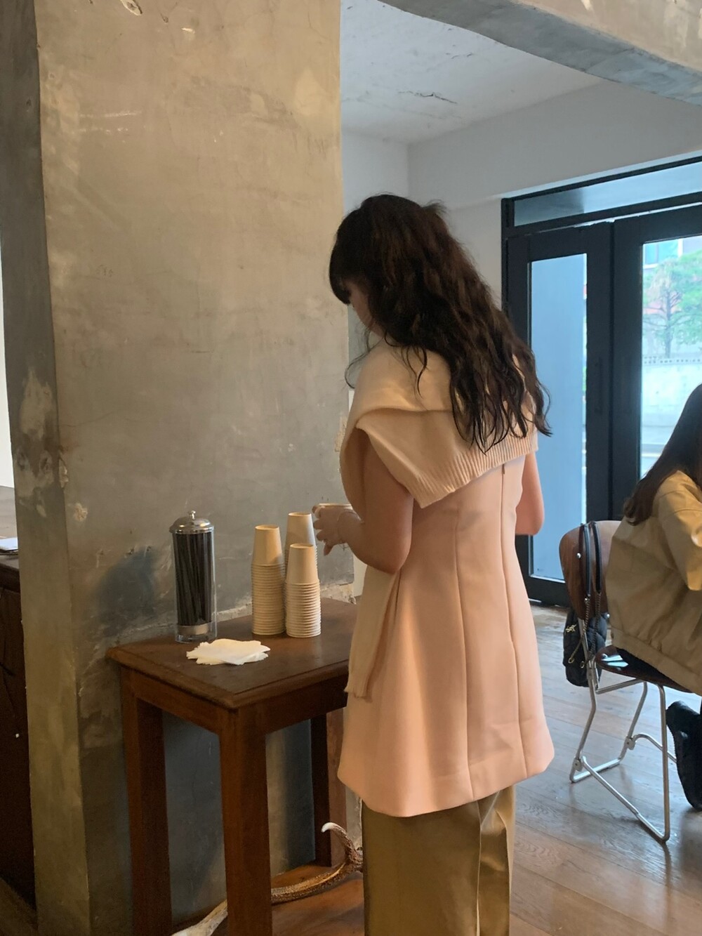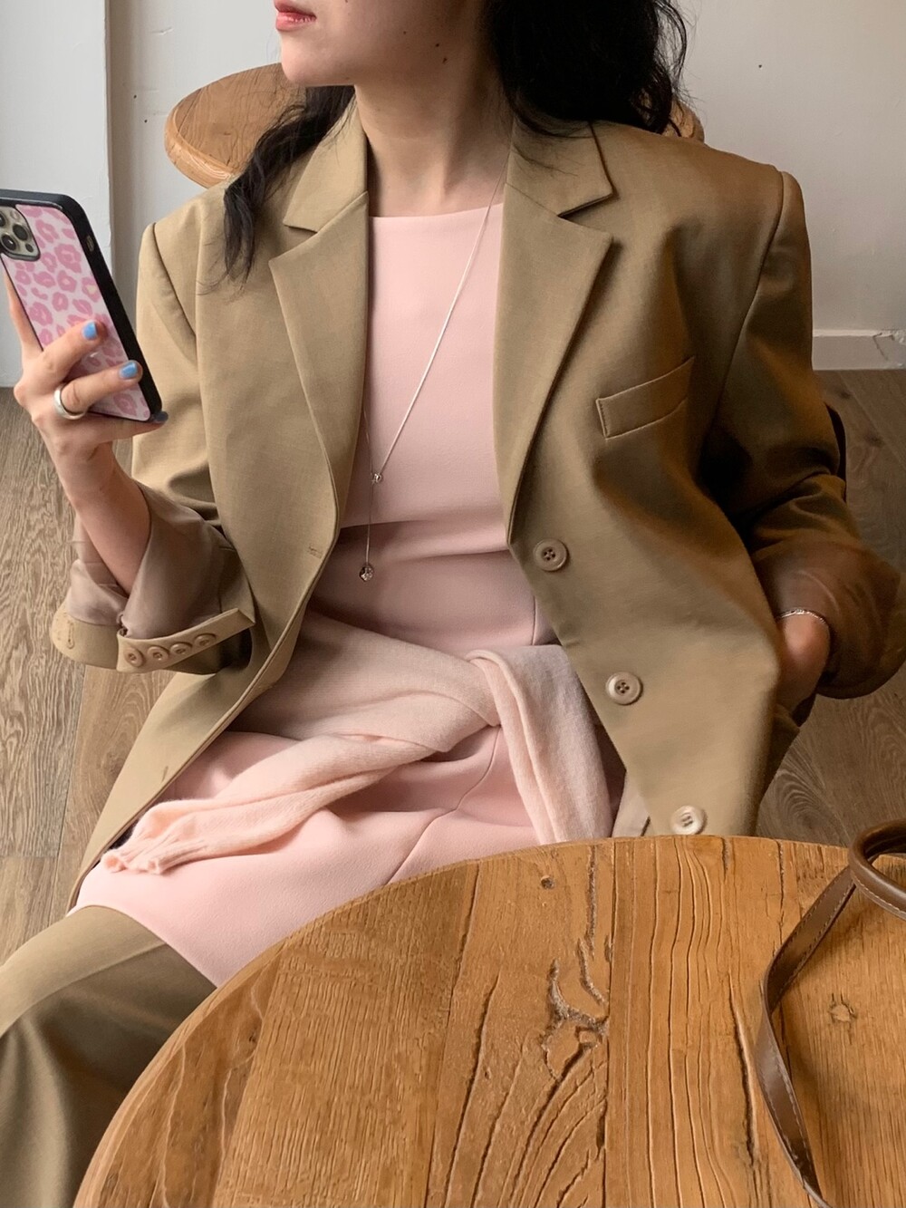 두께감 보통 / 비침 없음 / 신축성 약간 / 안감 있음