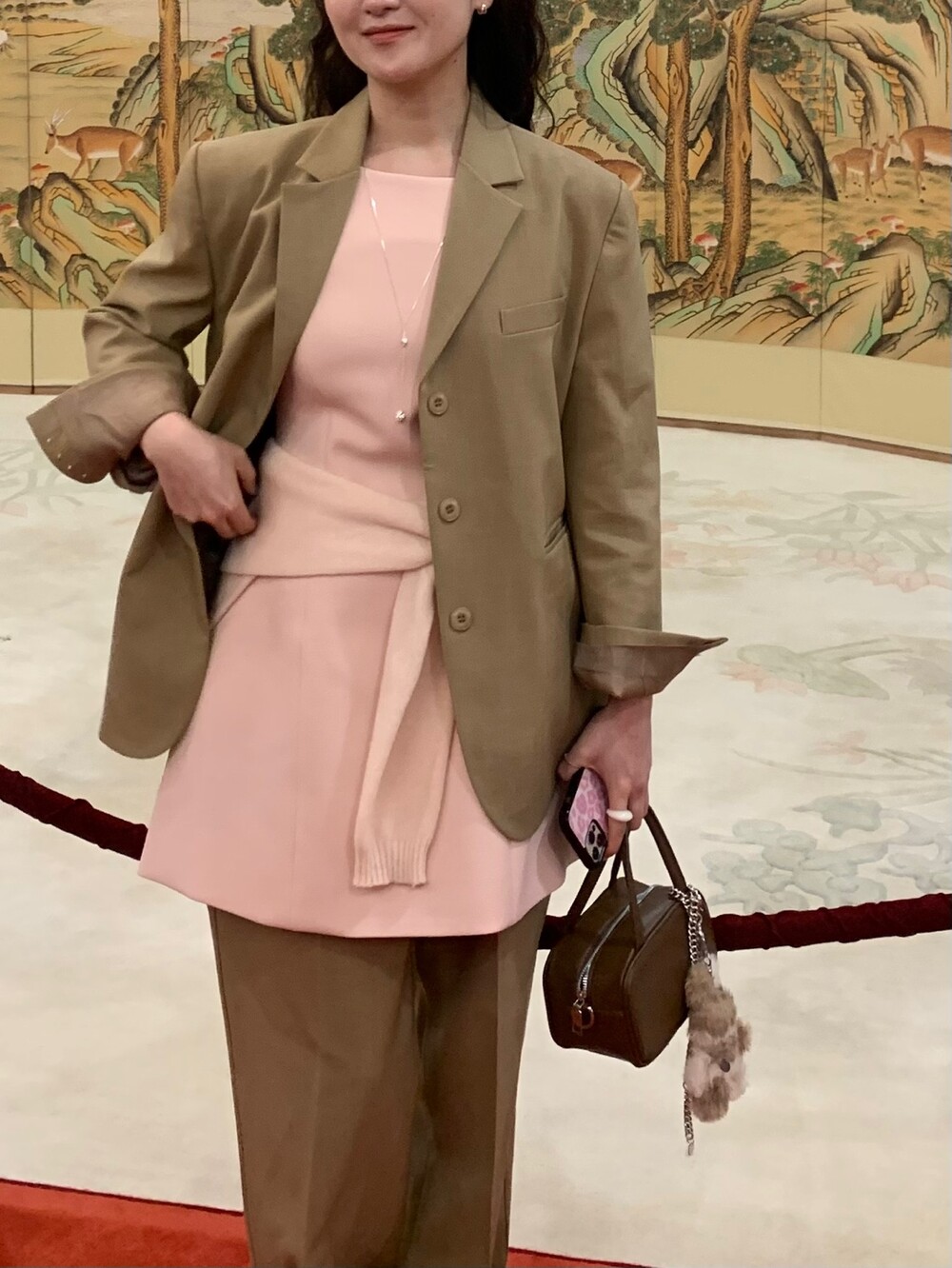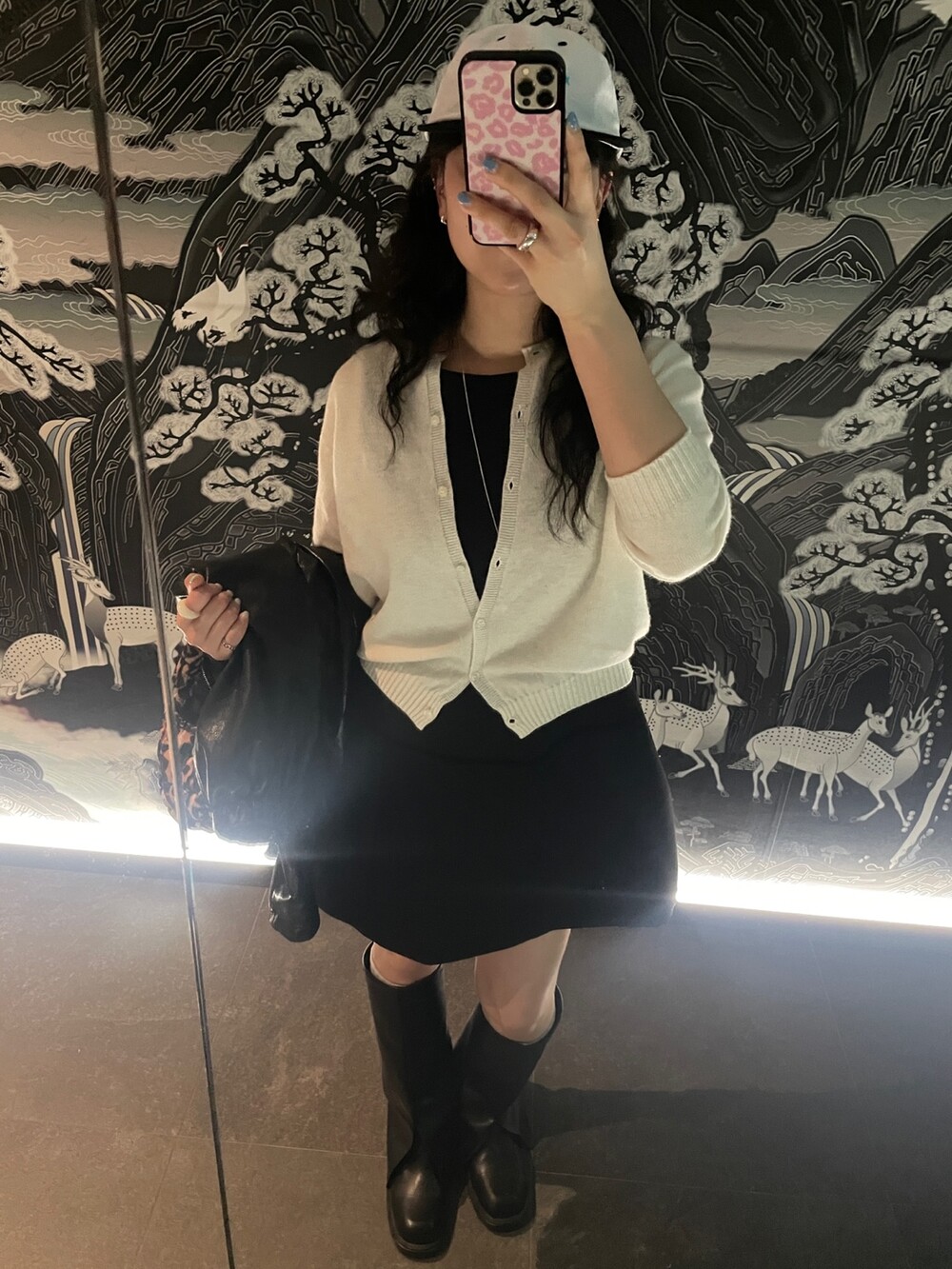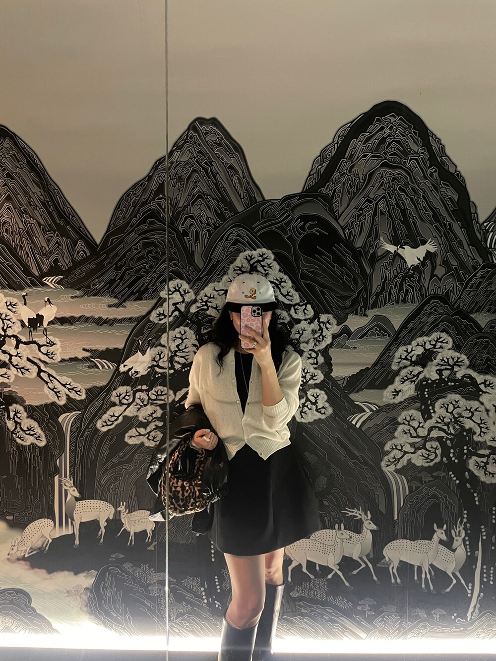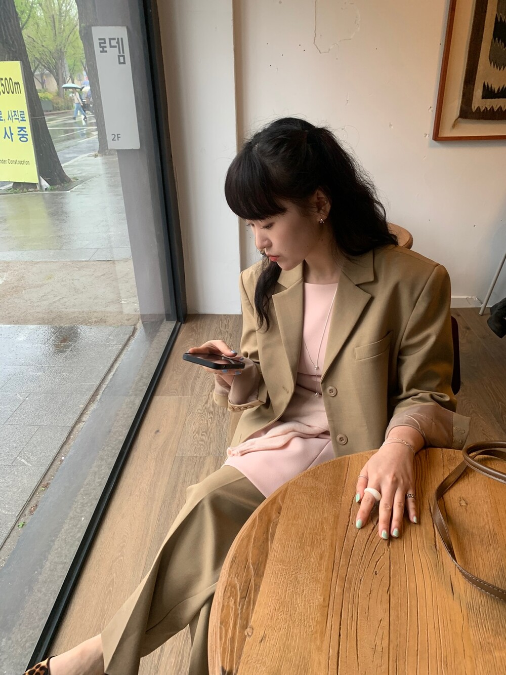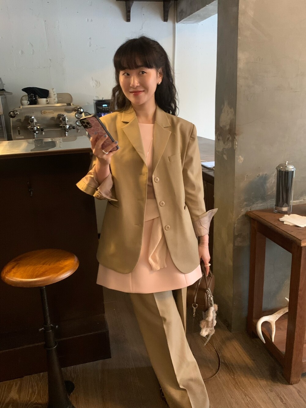 두께감 보통 / 비침 없음 / 신축성 약간 / 안감 있음