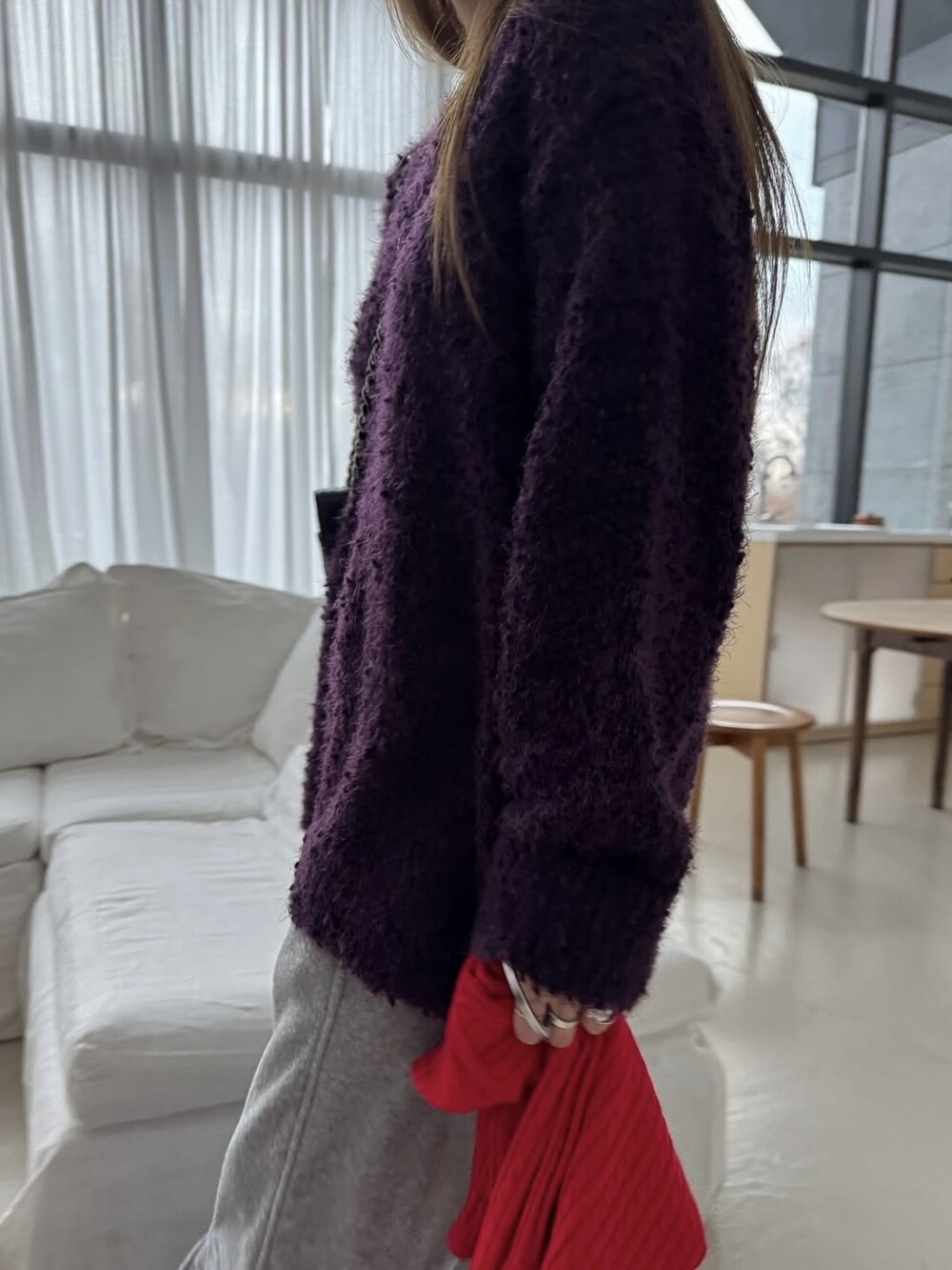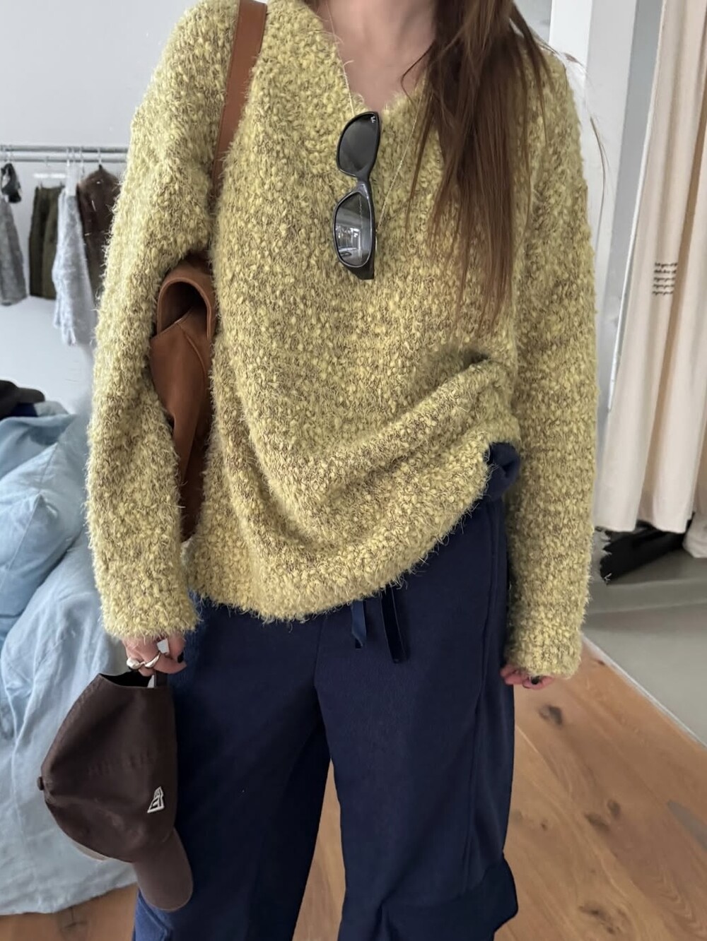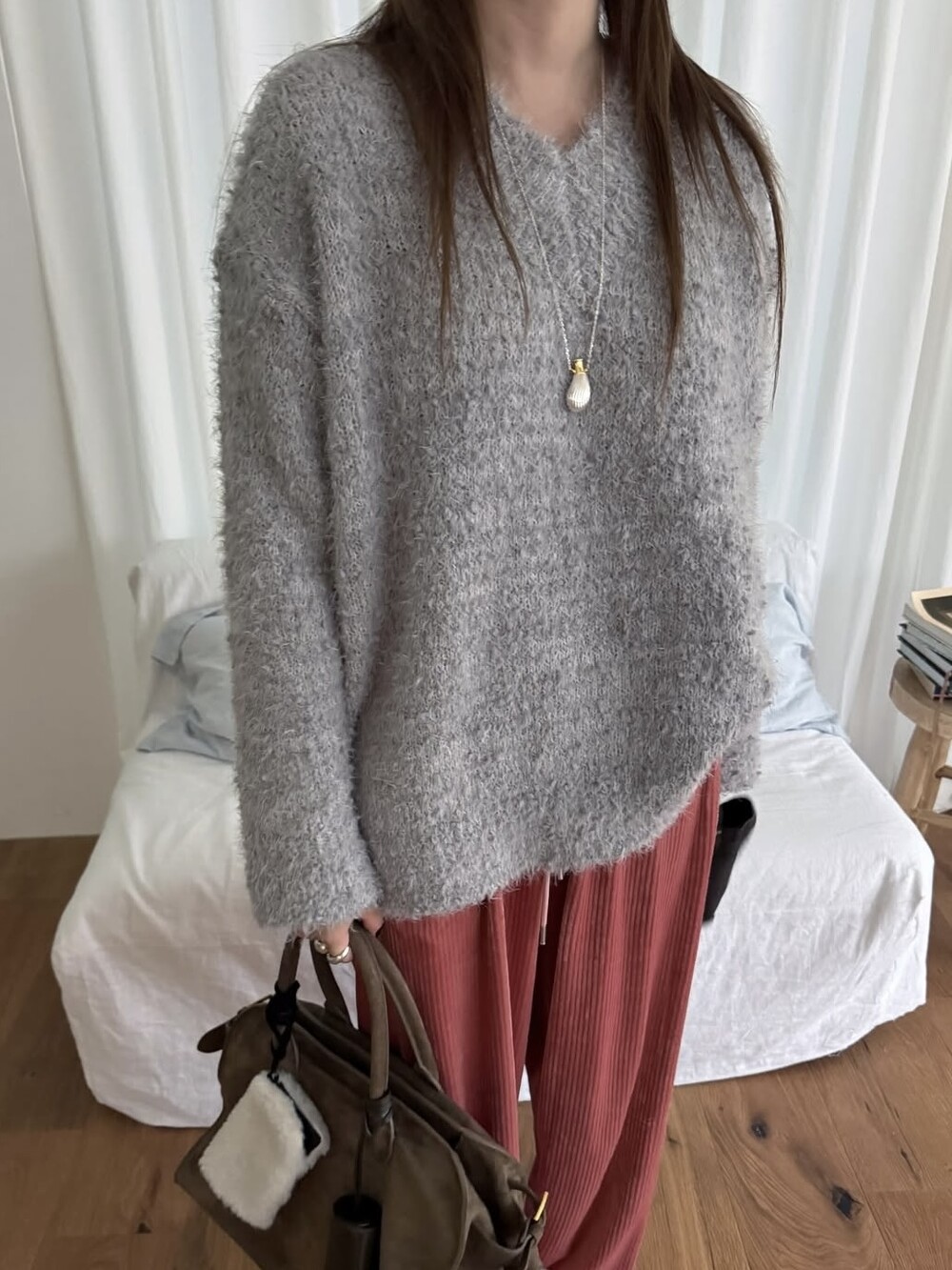 팝콘 브이넥 니트