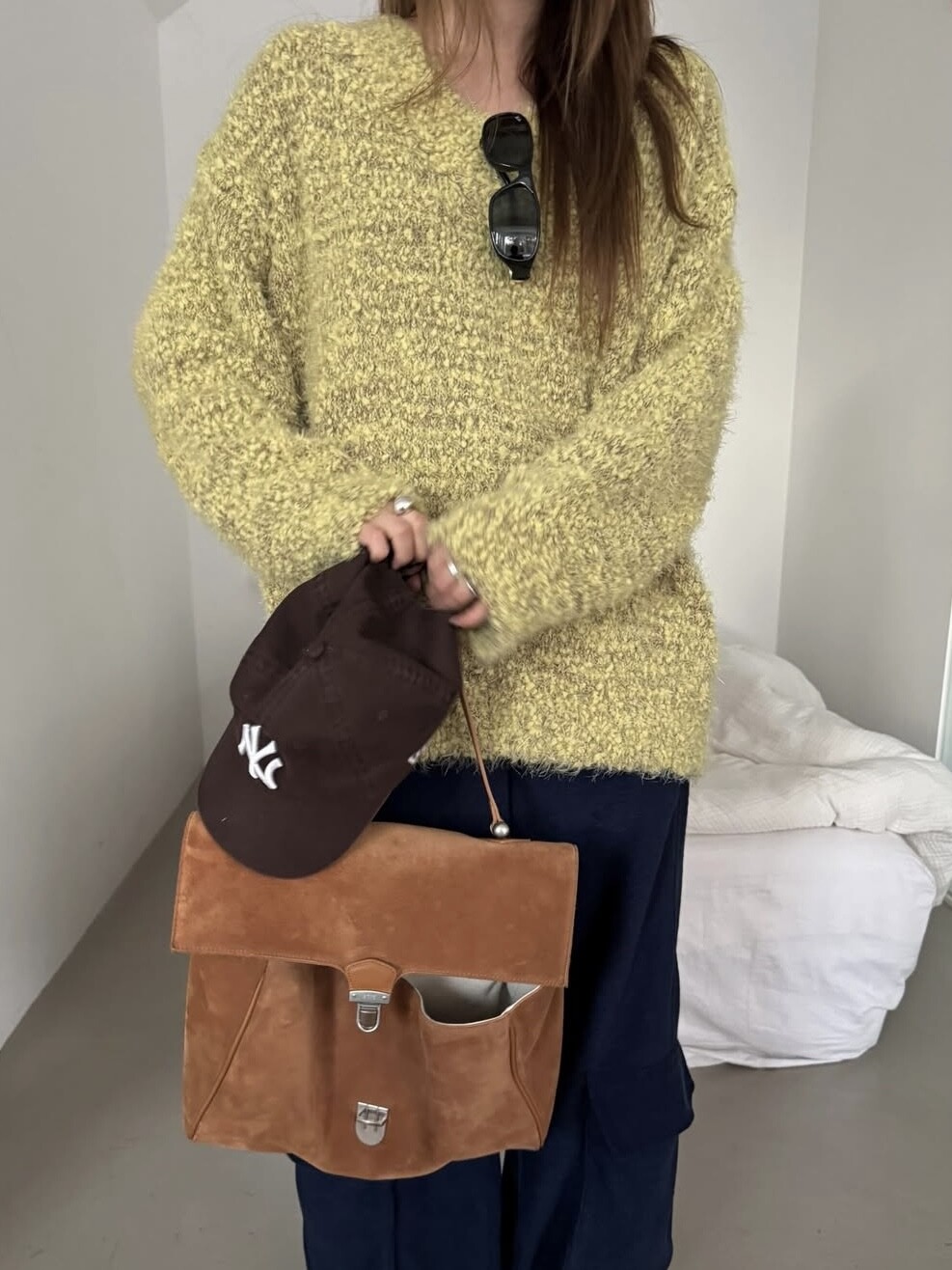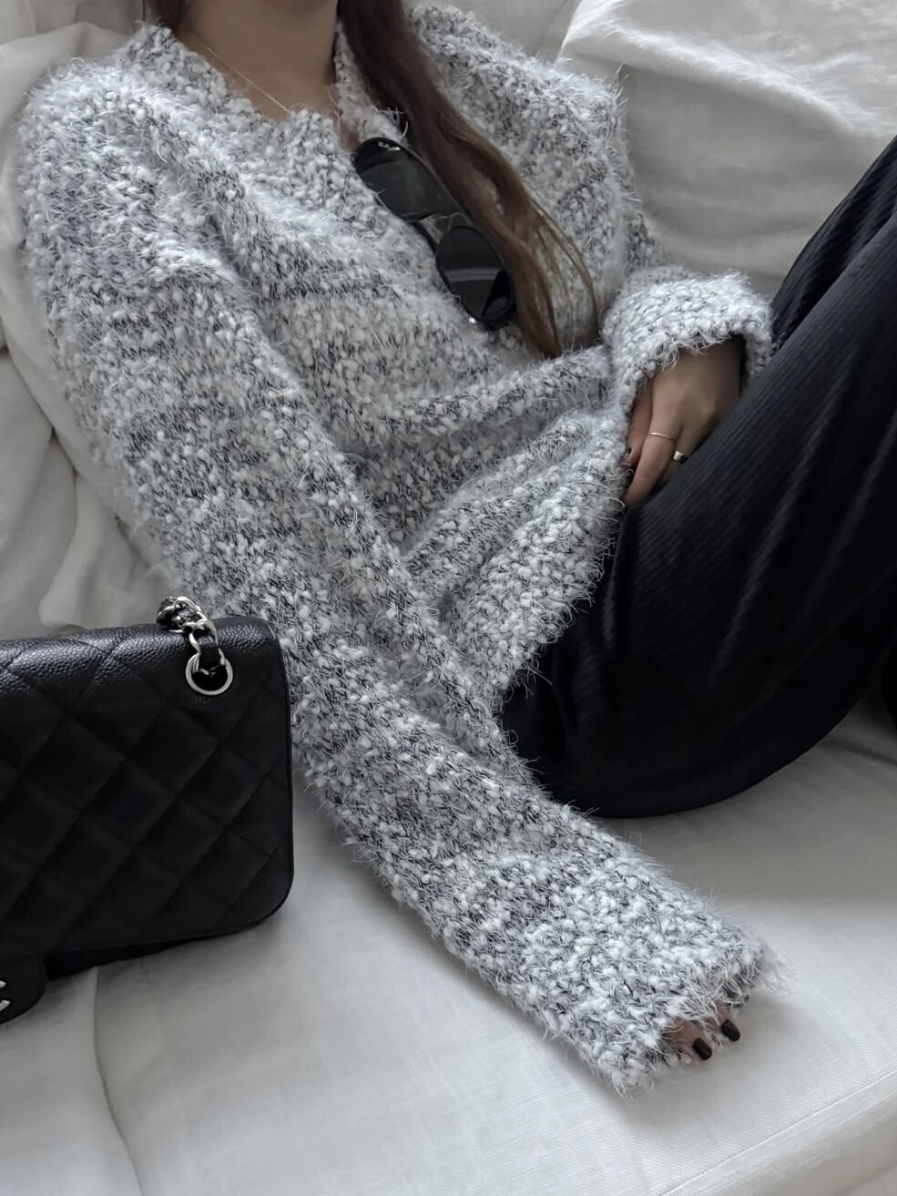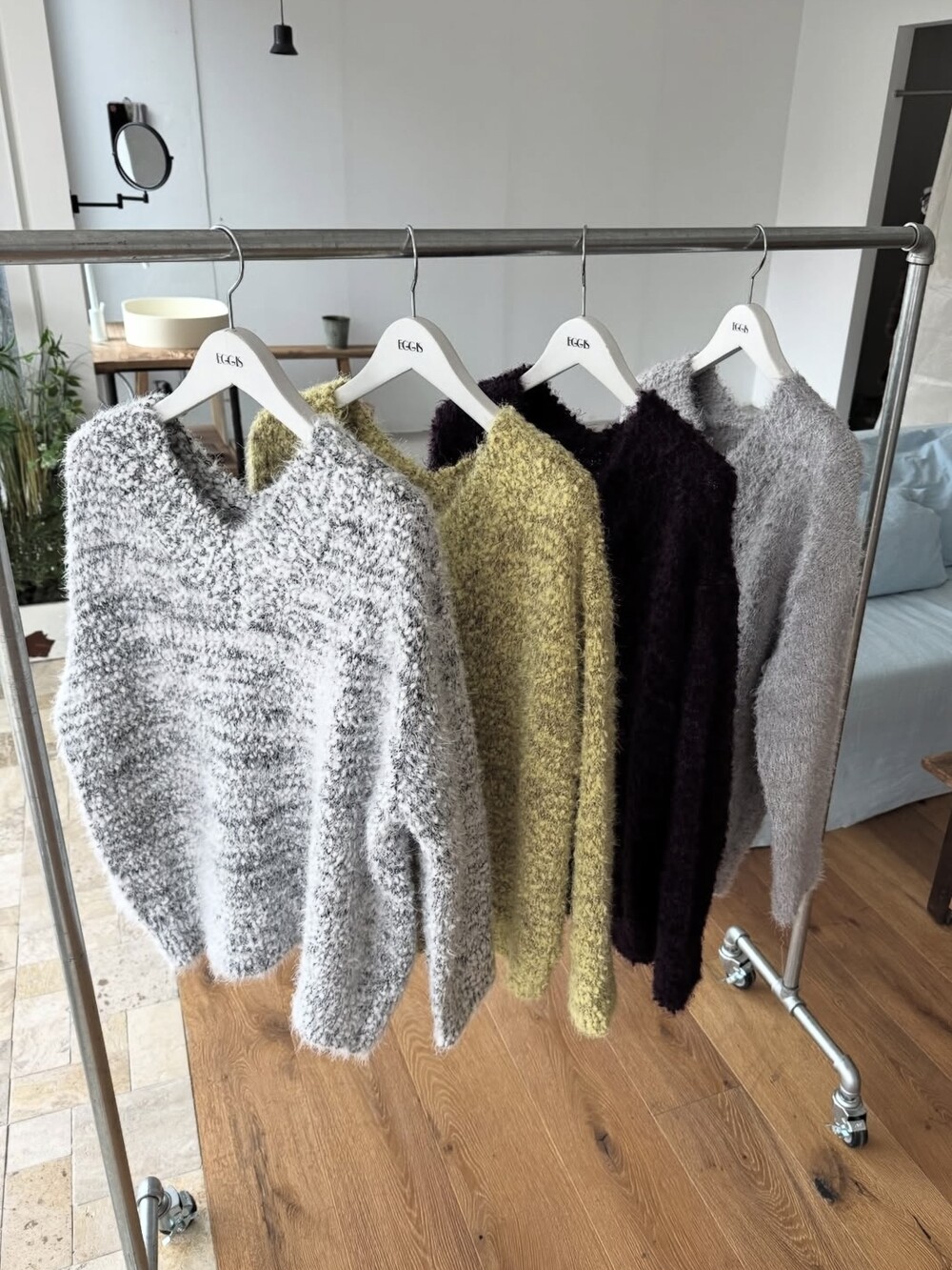 팝콘 브이넥 니트