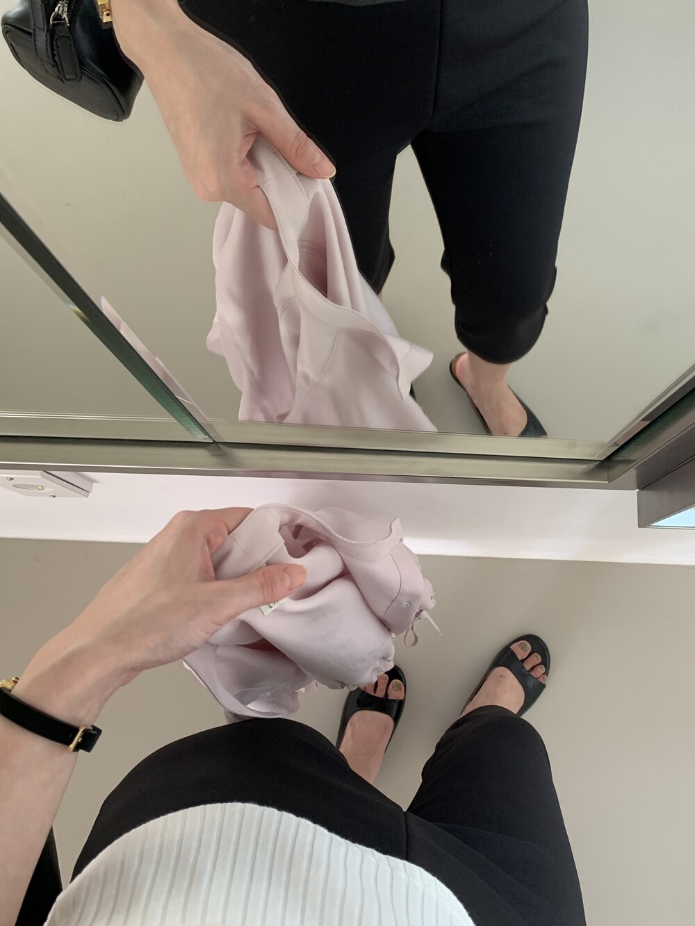 두께감 얇음 / 비침 없음 / 신축성 좋음 / 안감 없음