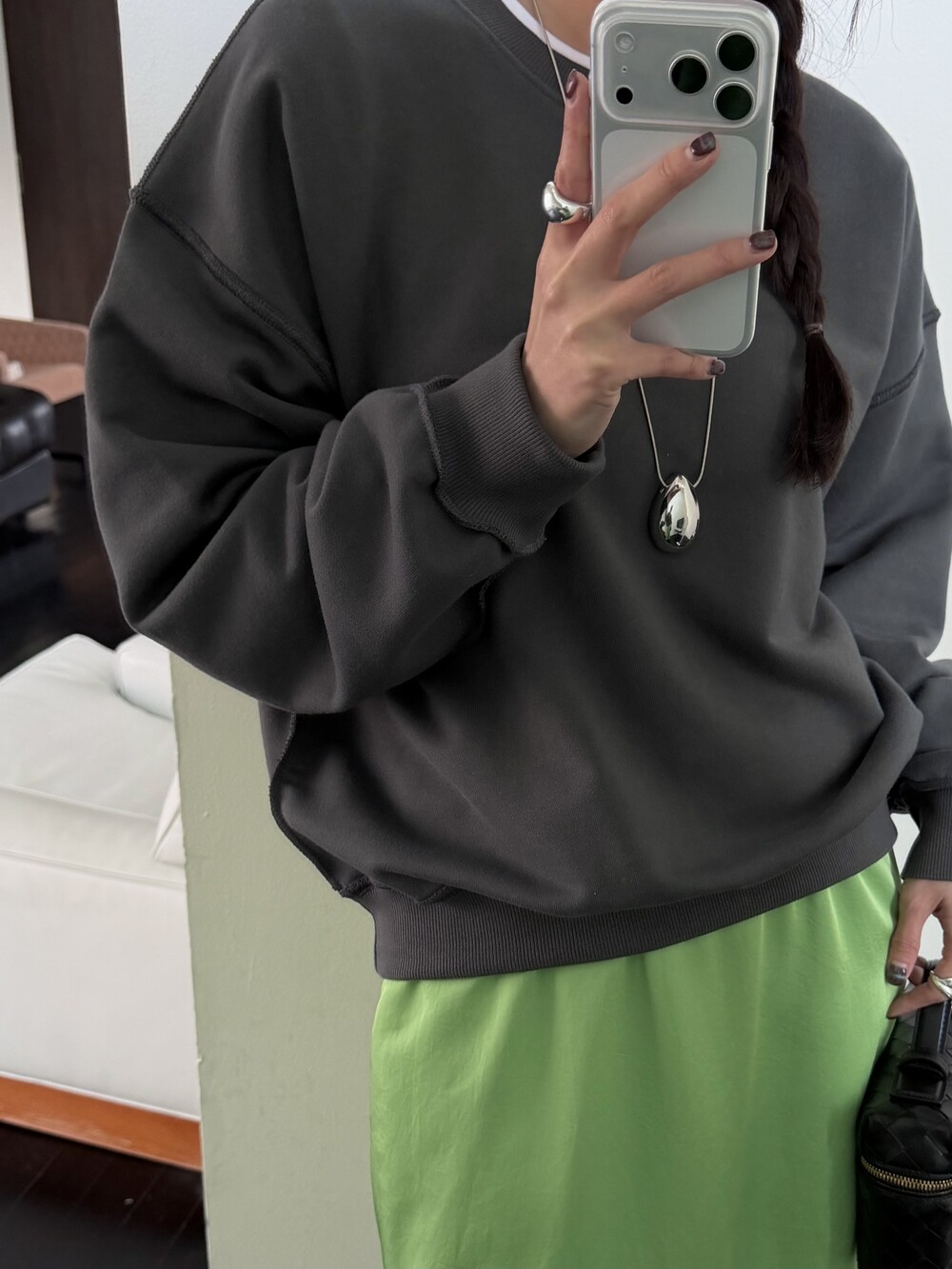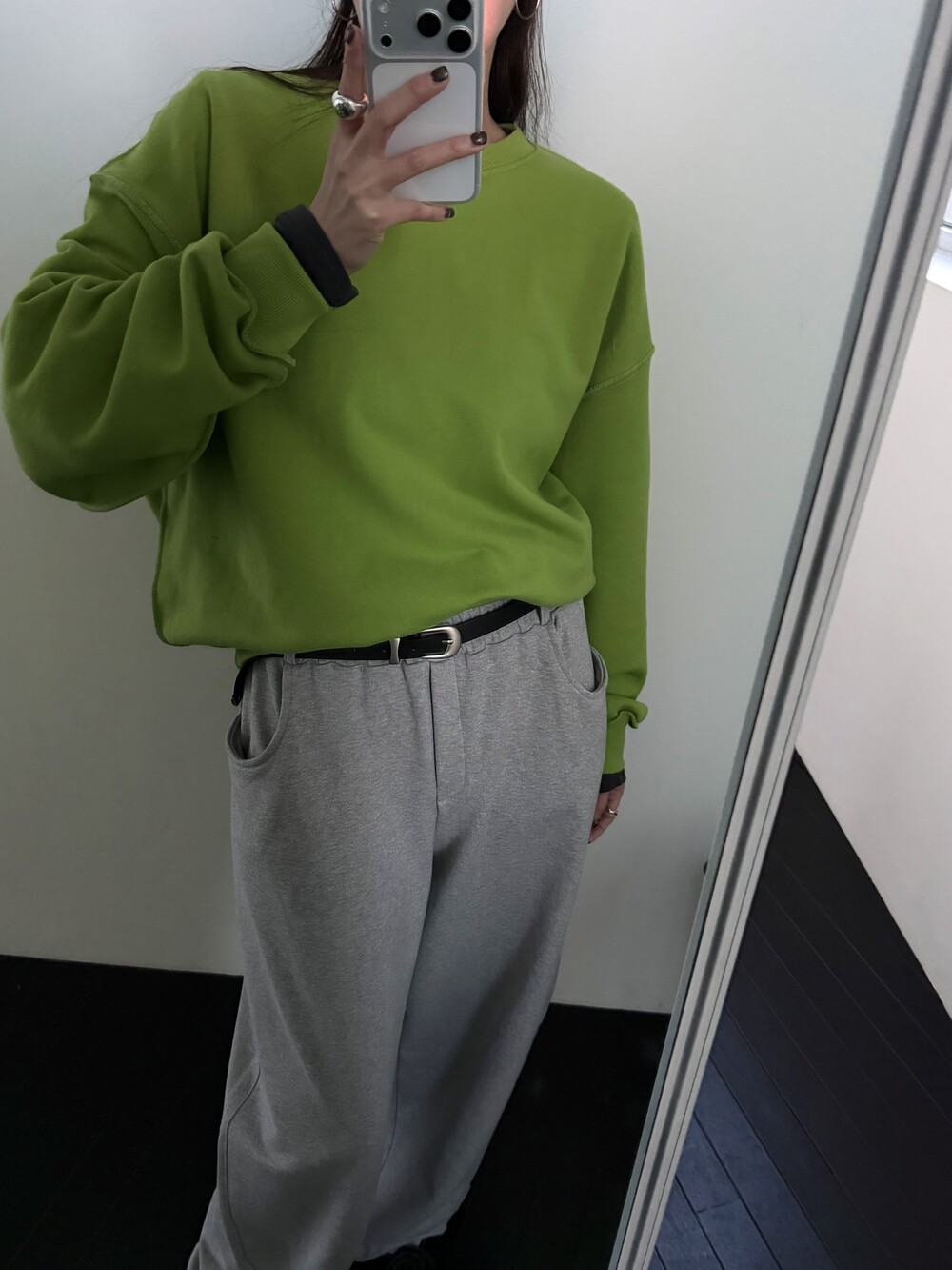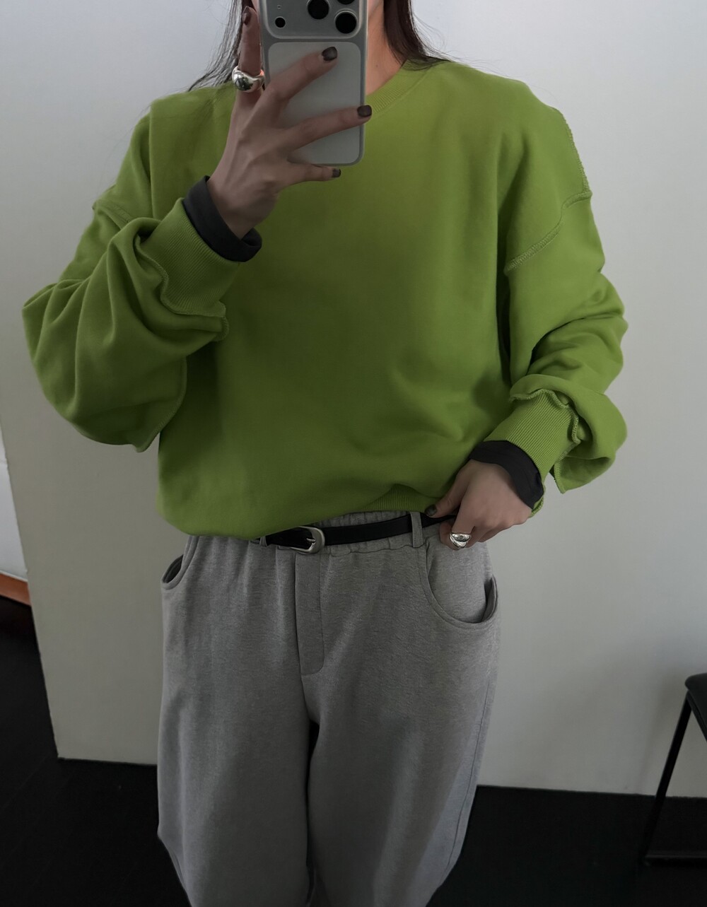 두께감 보통 / 비침 없음 / 신축성 좋음 / 안감 없음