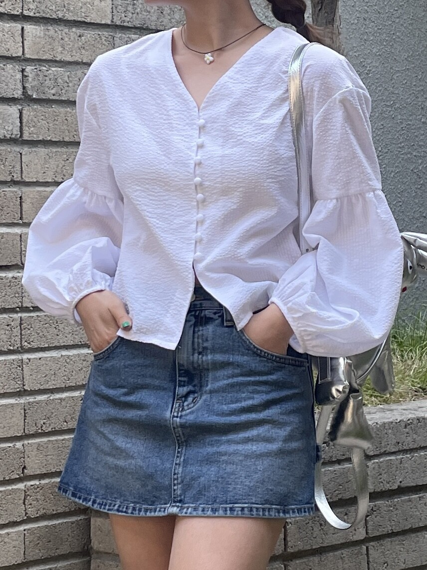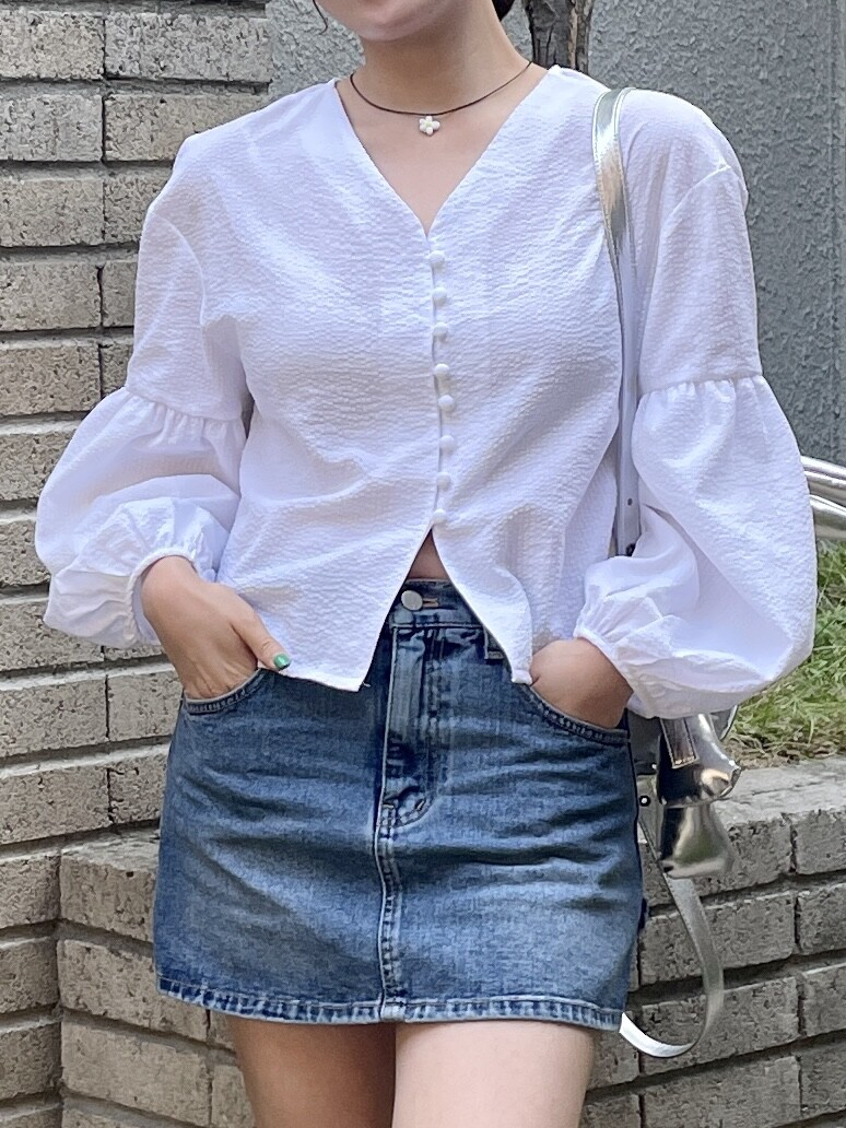 브이넥이 많이 파이지 않아서 단품으로도 착용가능하고 라운드니타 폴라, 셔츠와 함께 레이어드해서 코디해도 좋은 아이템이에요!