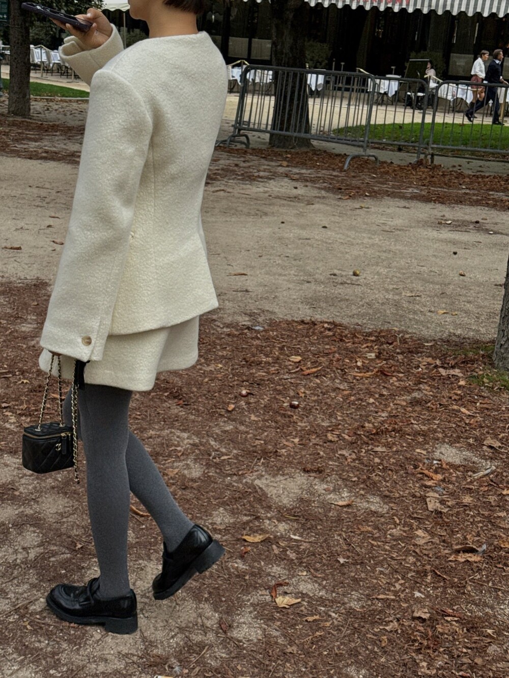 두께감 보통 / 비침 없음 / 신축성 없음 / 안감 있음