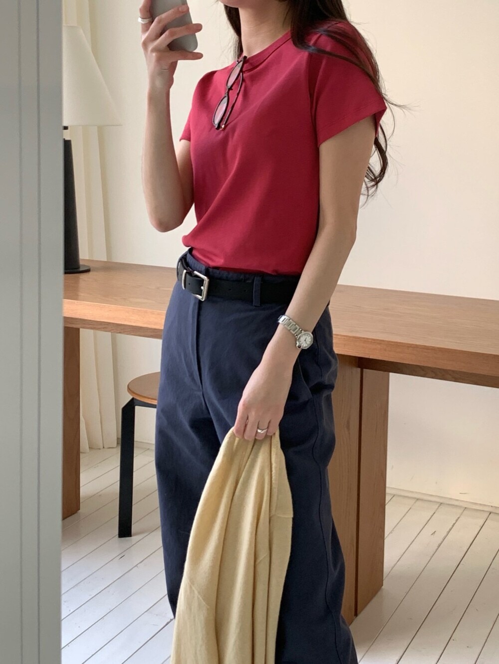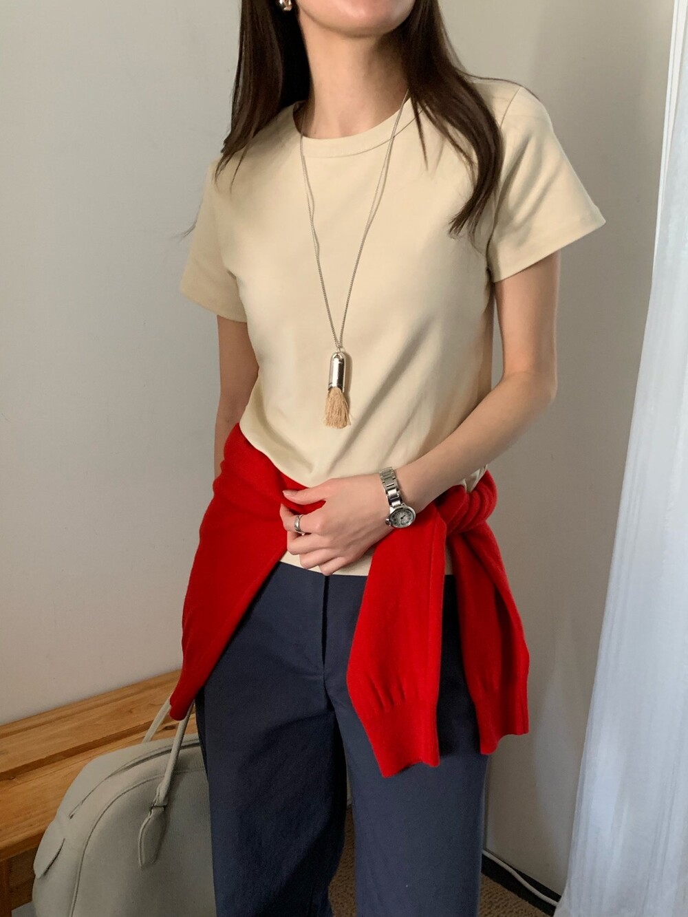 두께감 보통 / 비침 없음 / 신축성 좋음 / 안감 없음