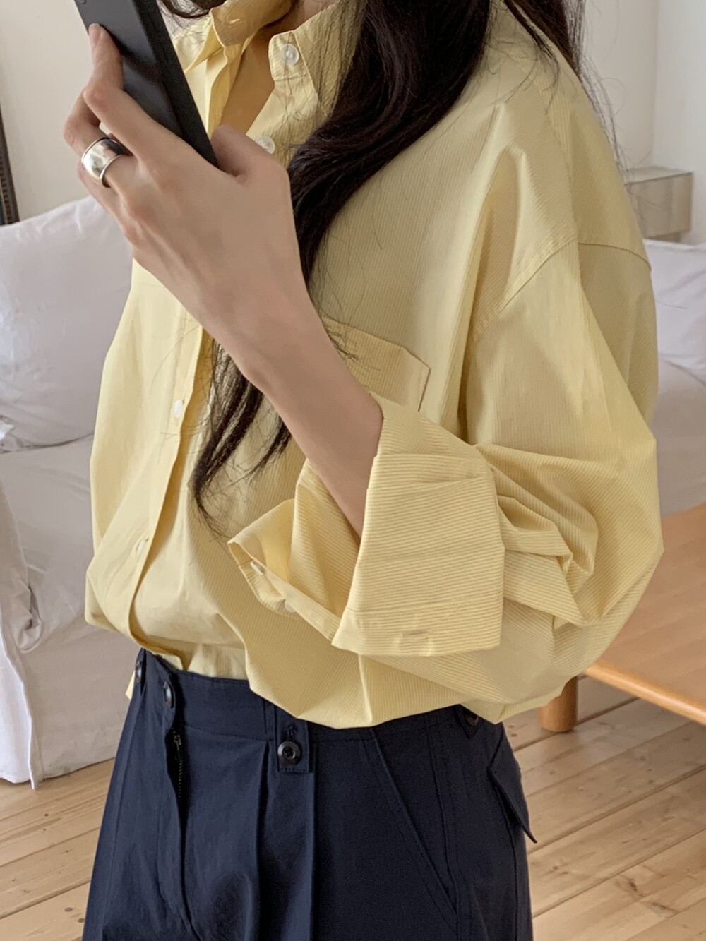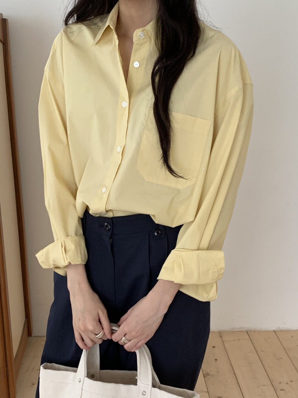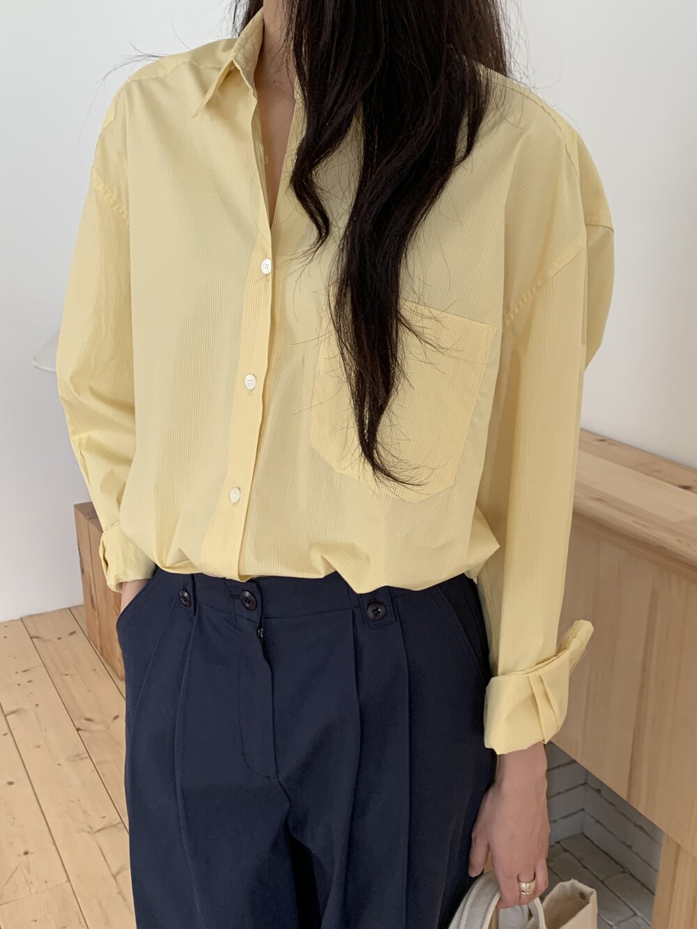 두께감 얇음 / 비침 약간 / 신축성 없음 / 안감 없음