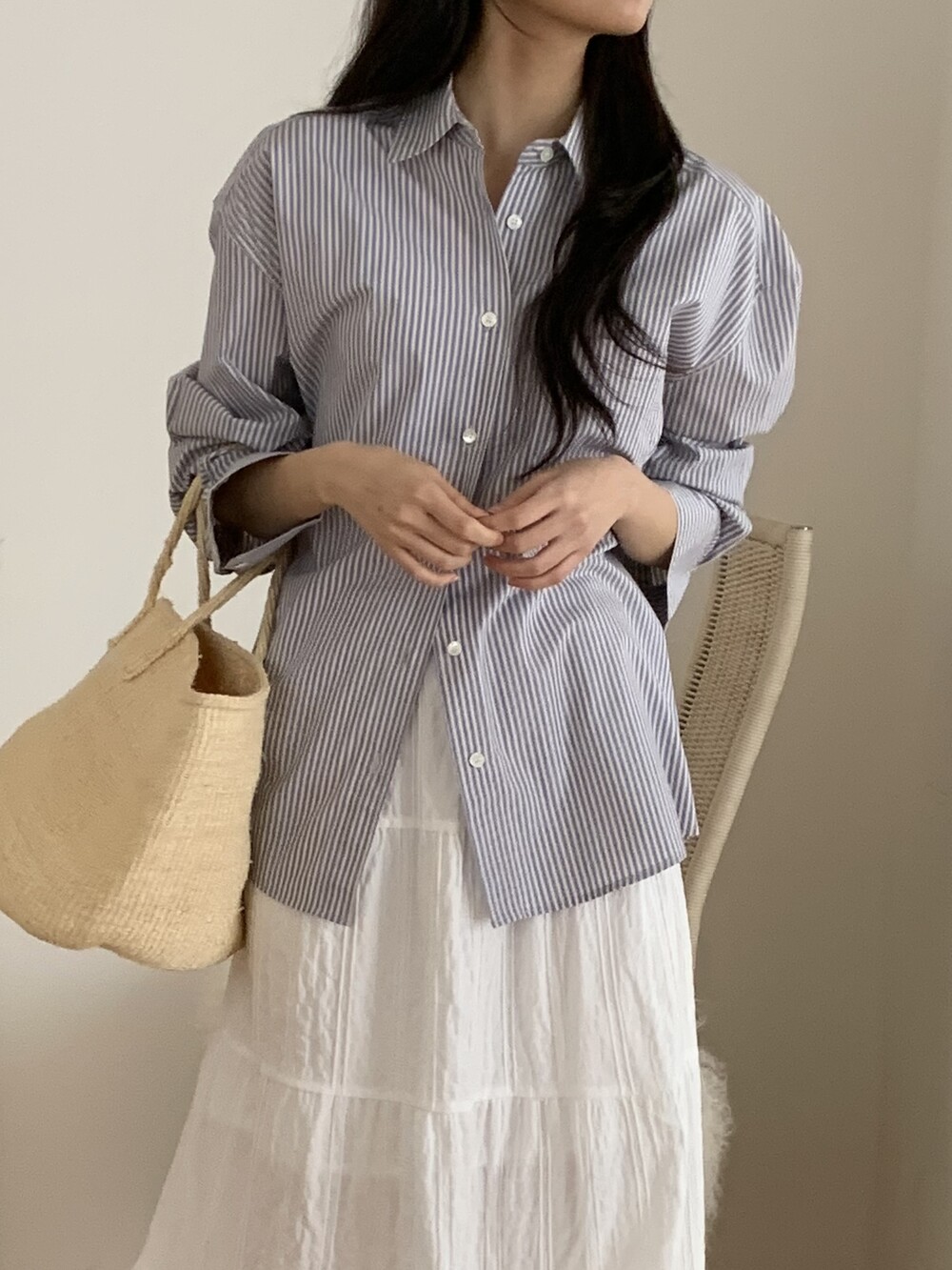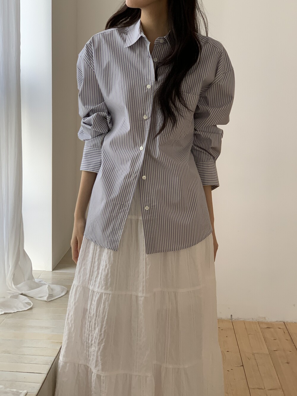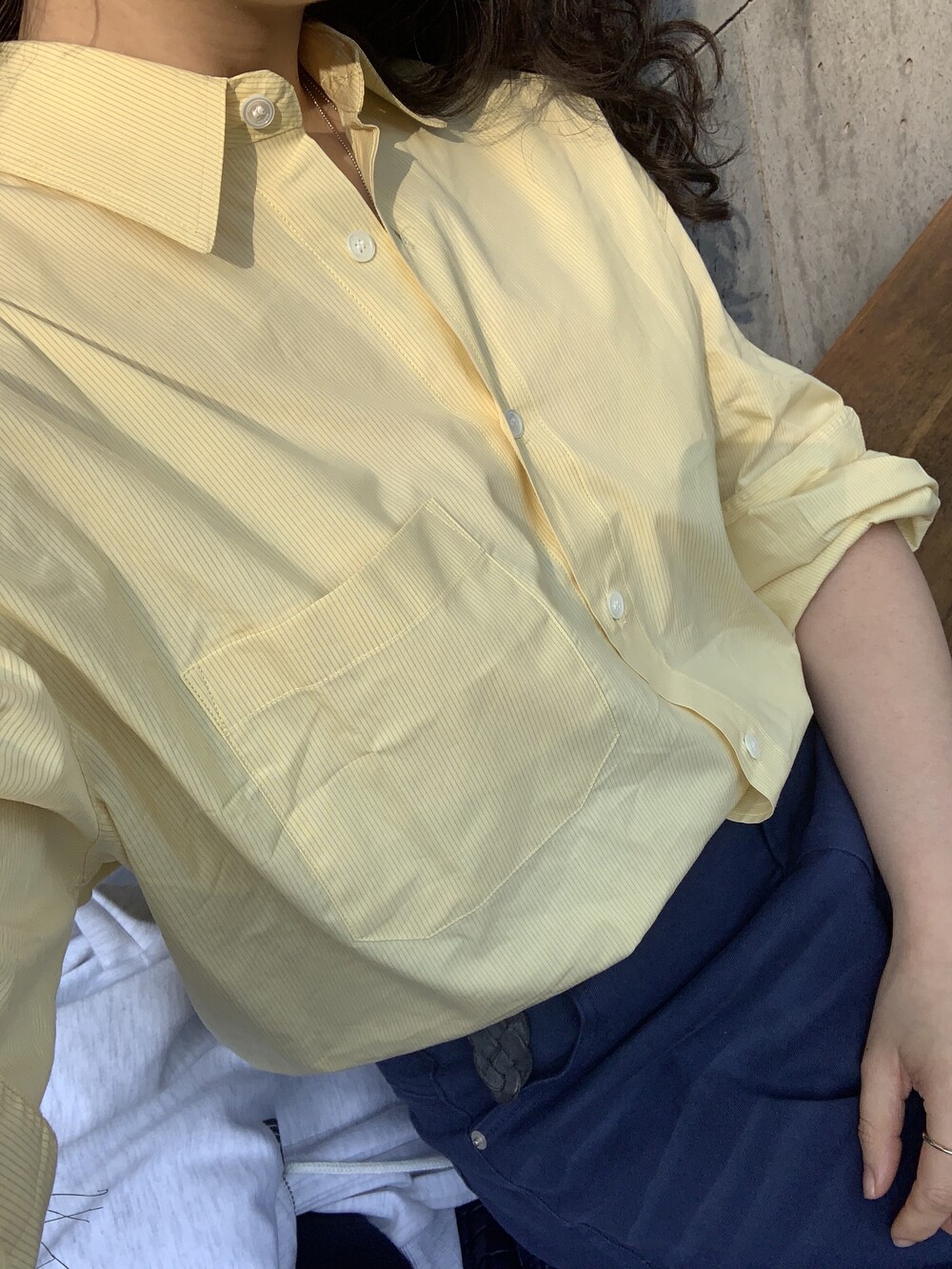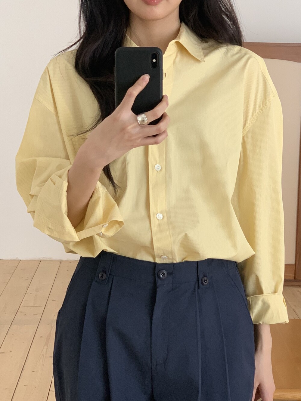 두께감 얇음 / 비침 약간 / 신축성 없음 / 안감 없음