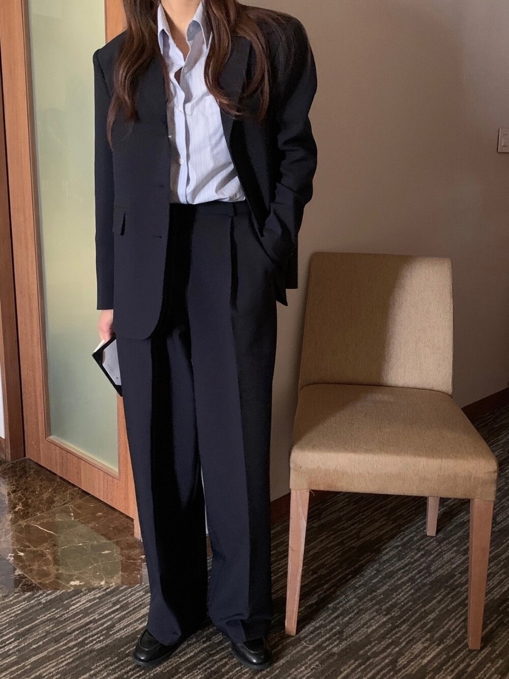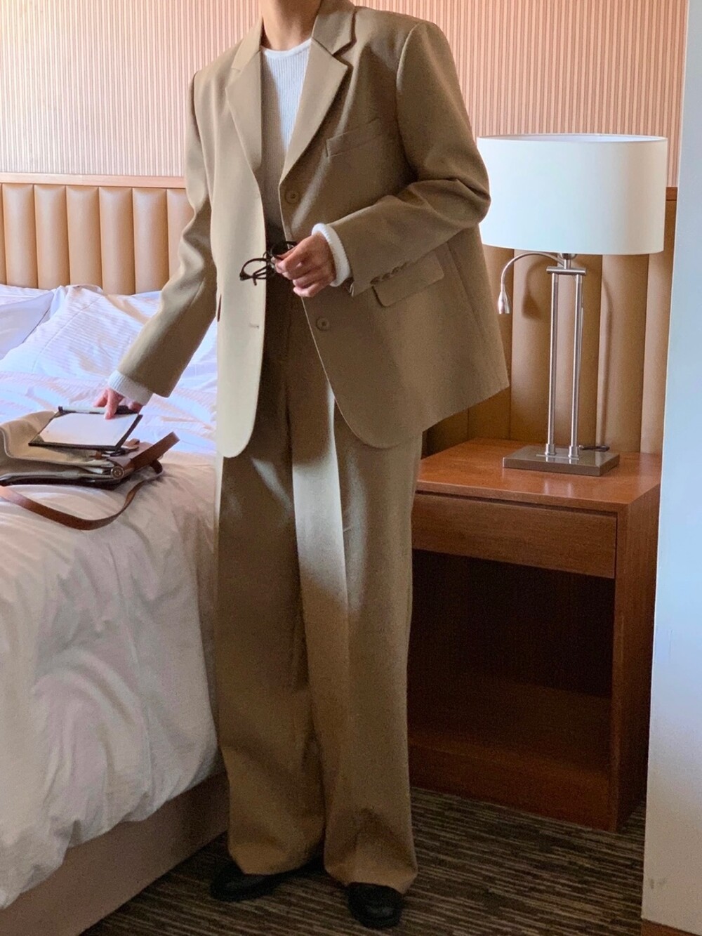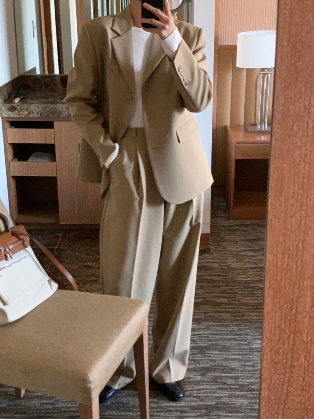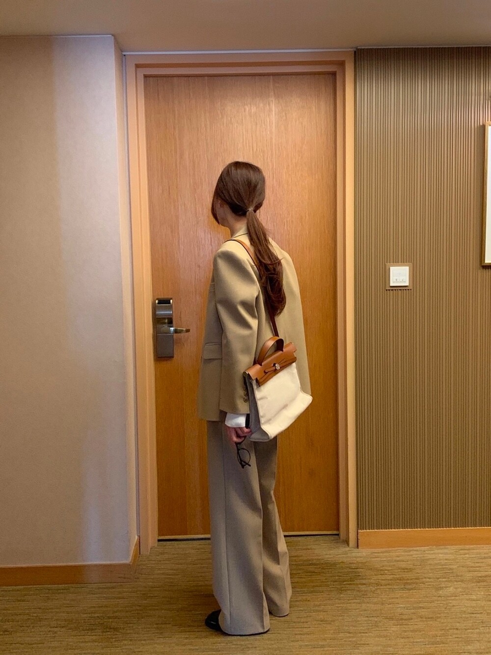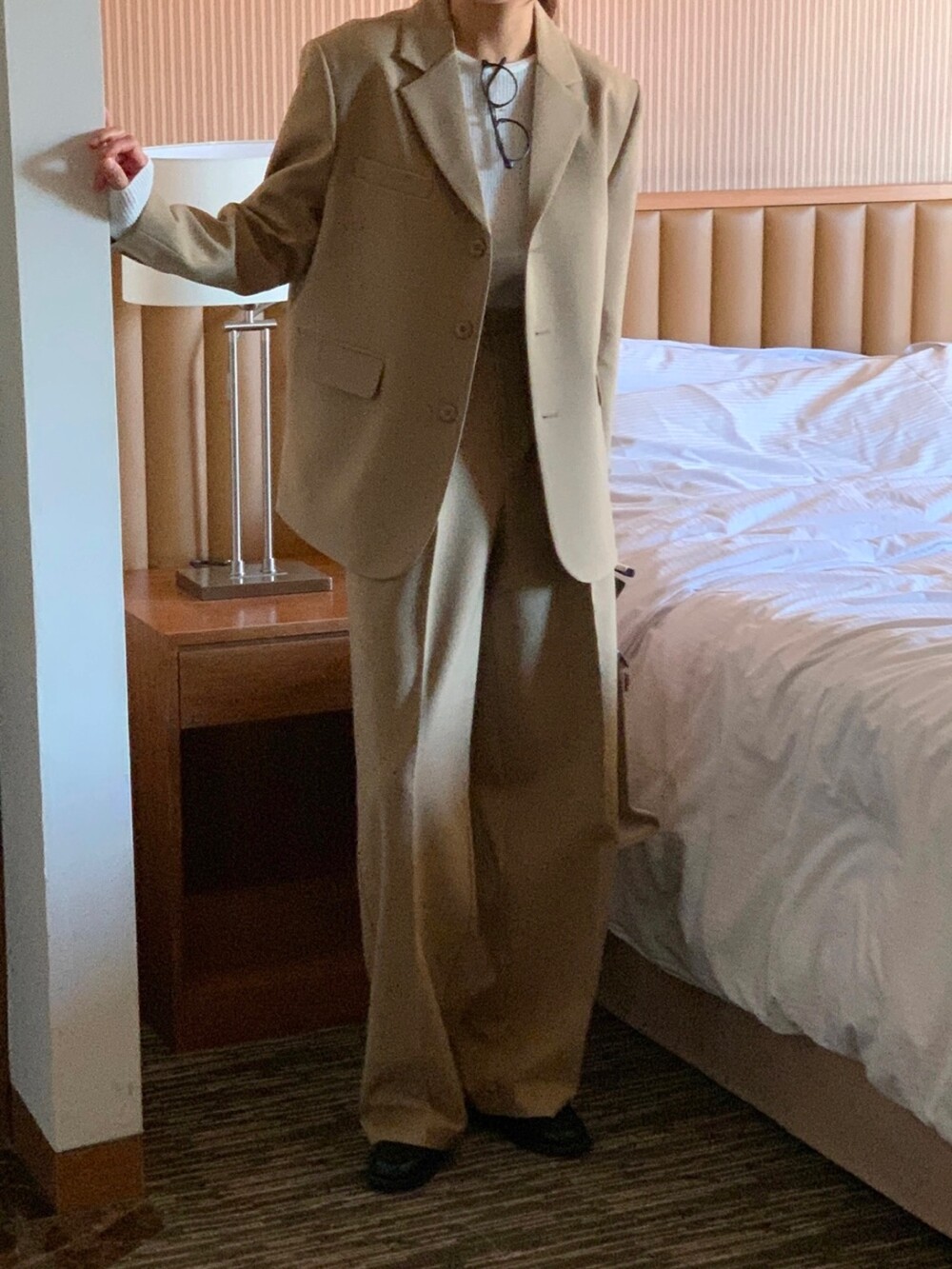 두께감 보통 / 비침 없음 / 신축성 없음 / 안감 있음