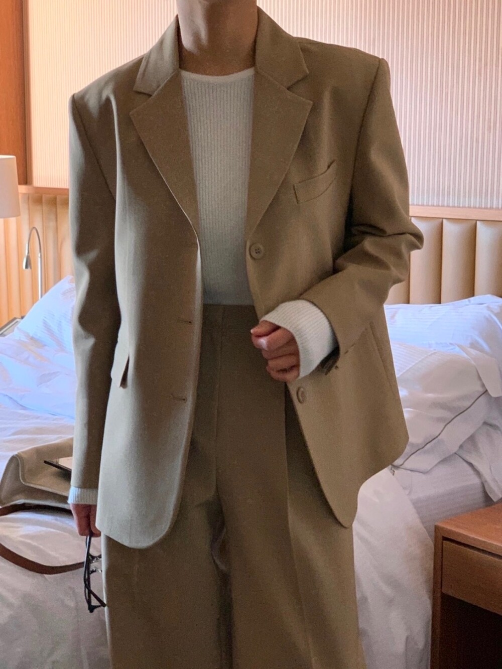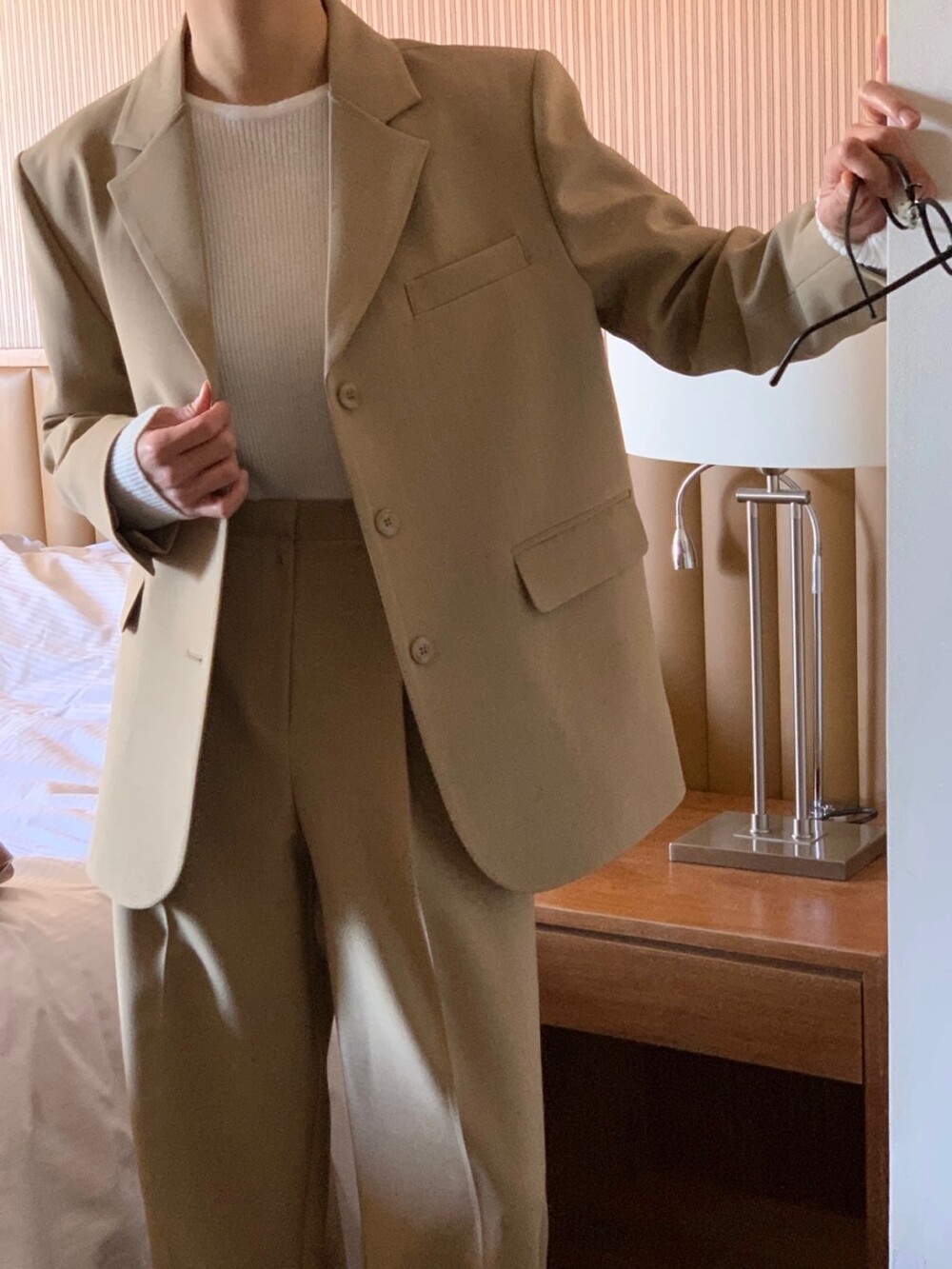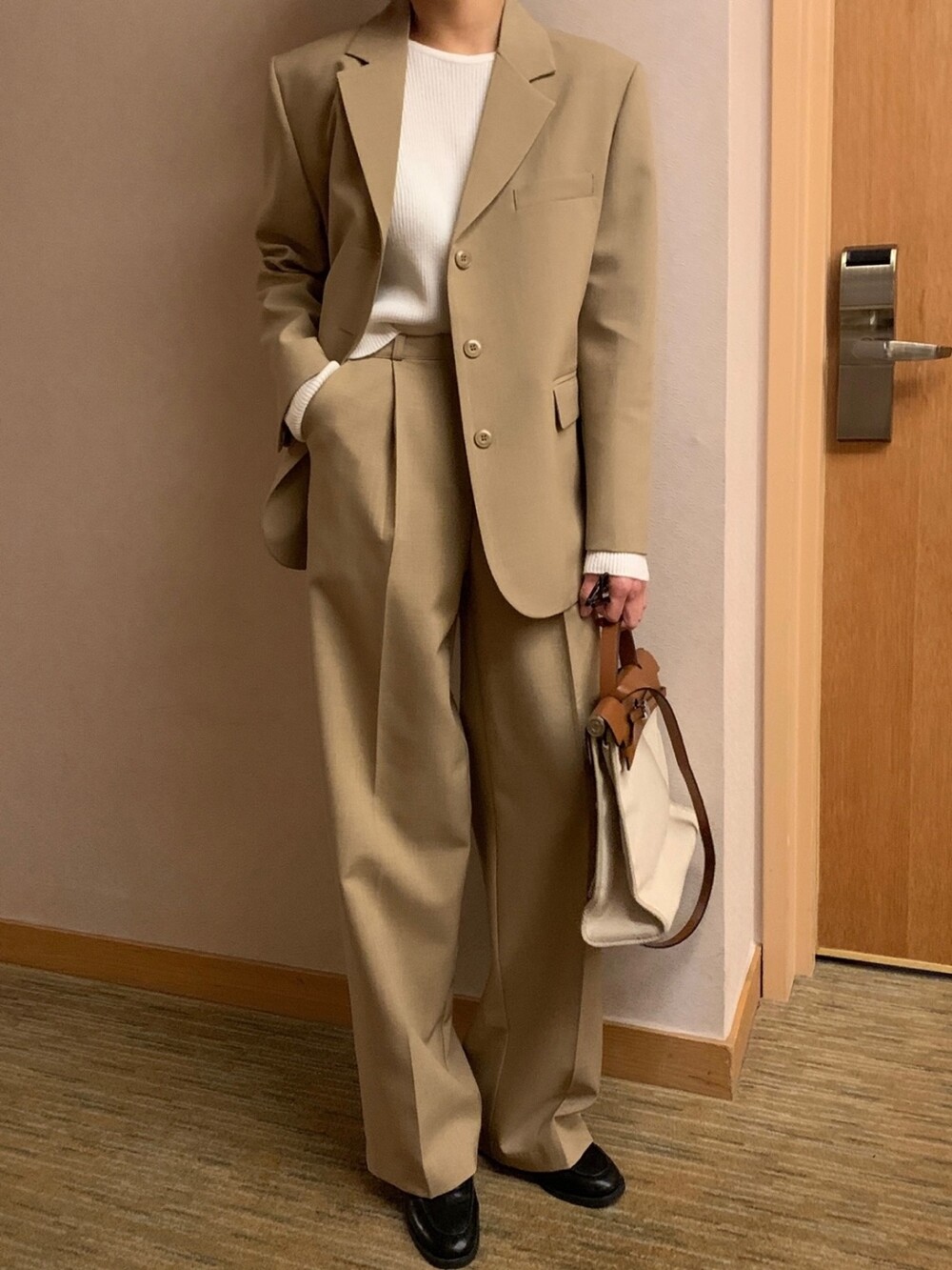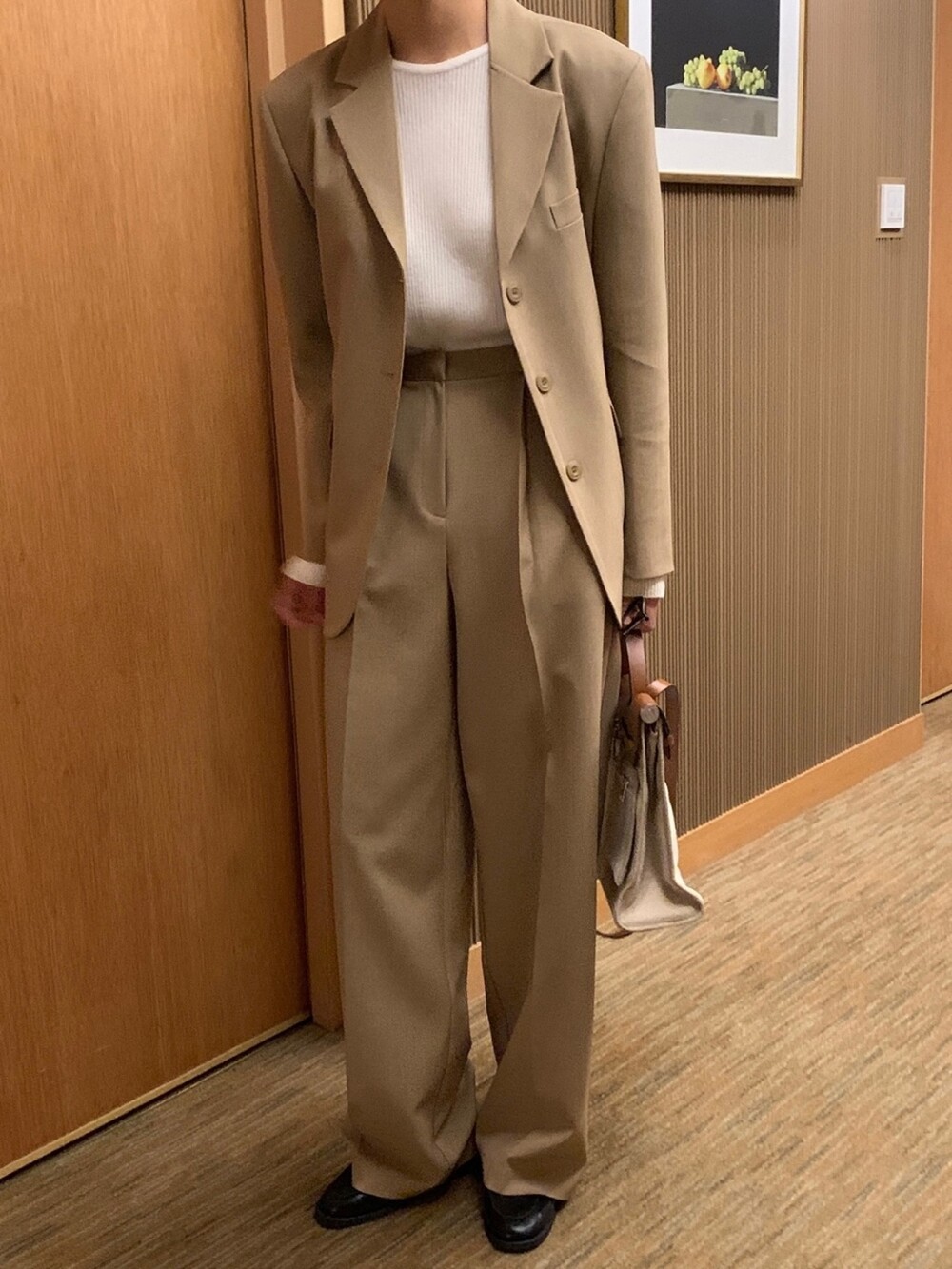 두께감 보통 / 비침 없음 / 신축성 없음 / 안감 있음