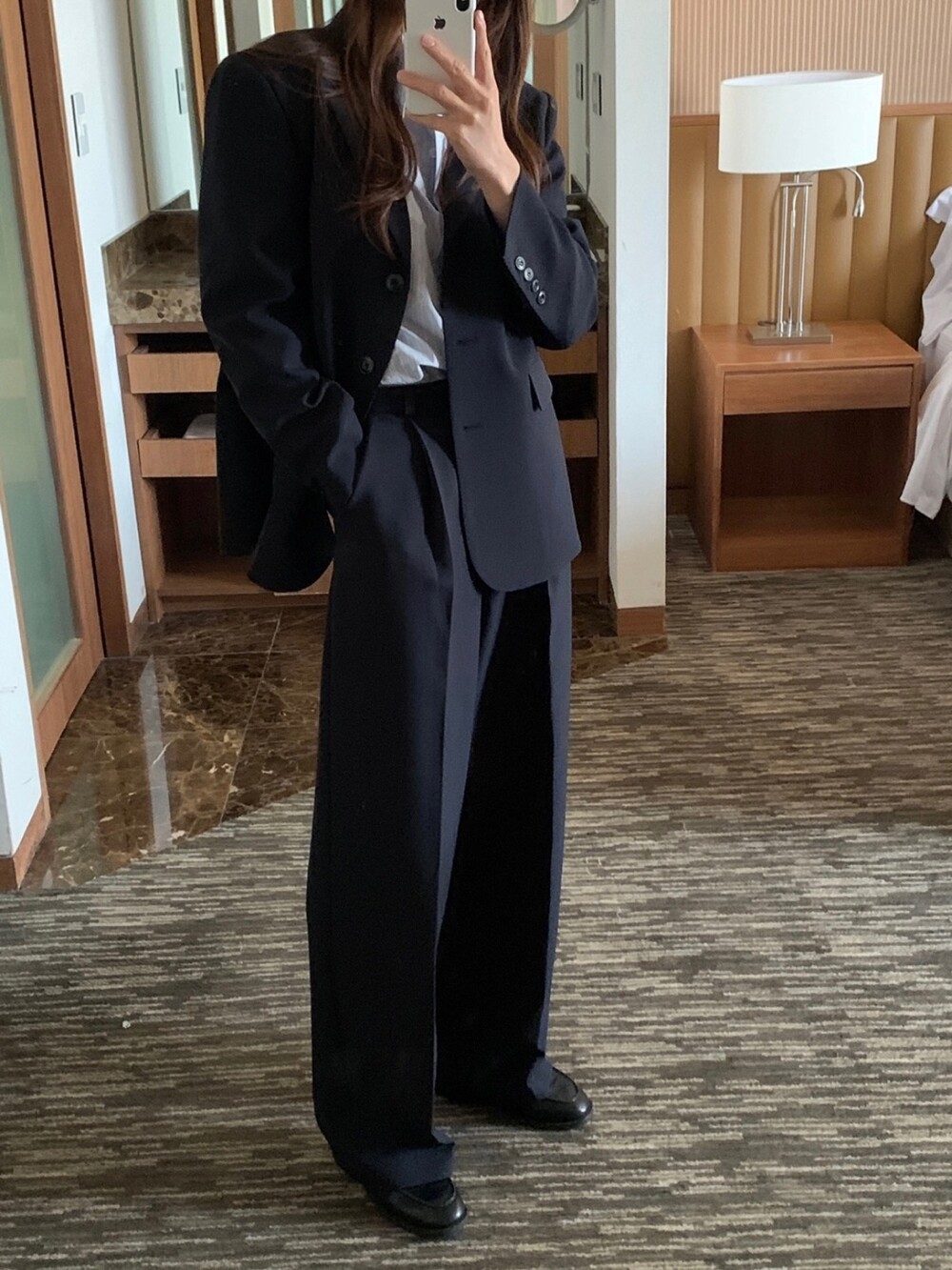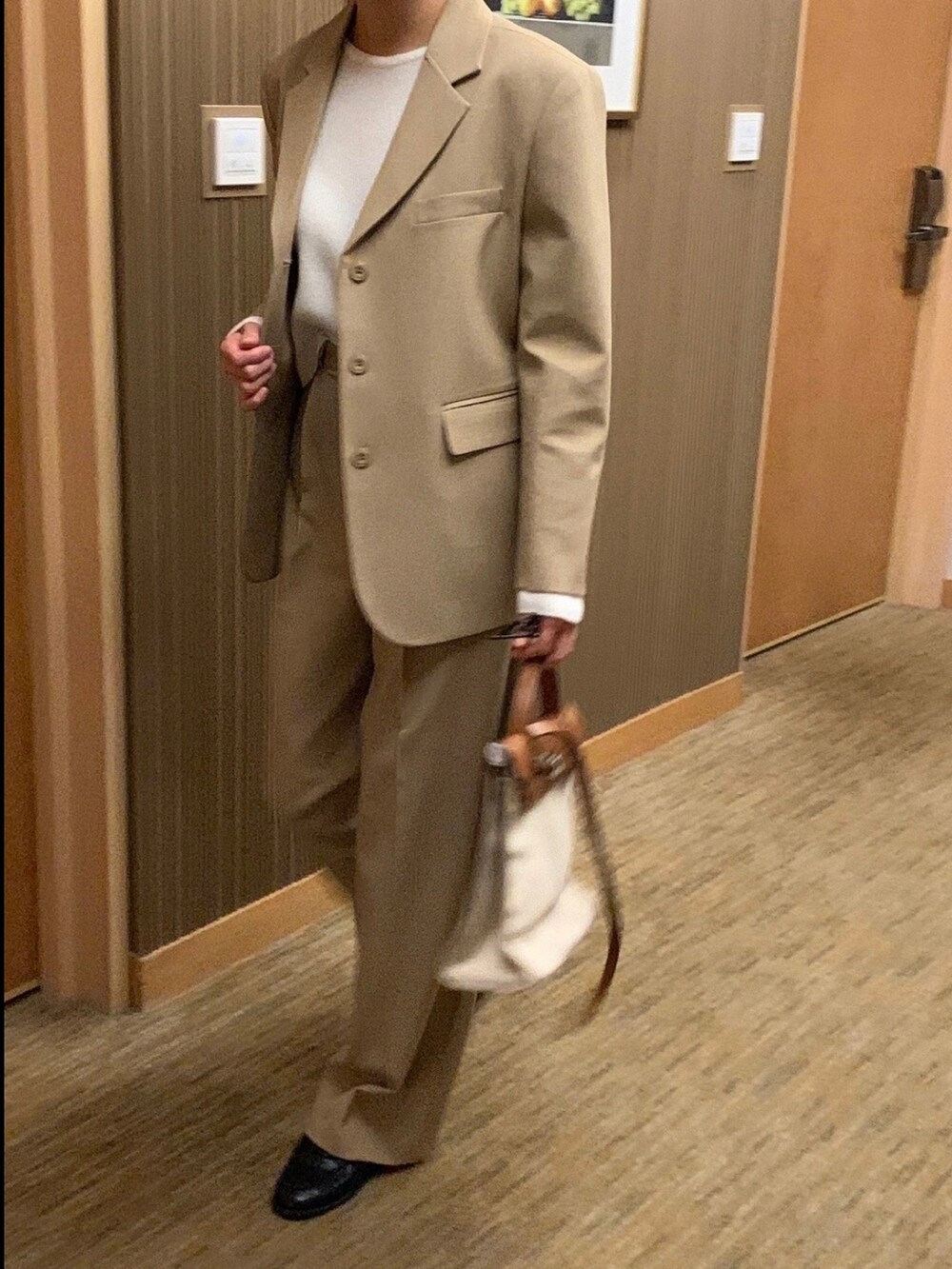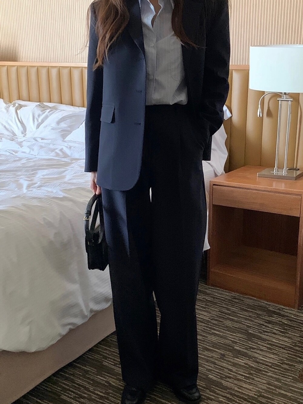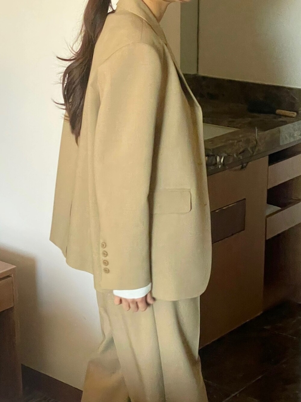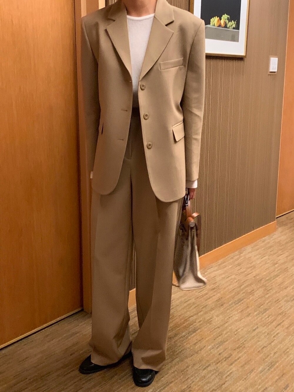 두께감 보통 / 비침 없음 / 신축성 없음 / 안감 있음