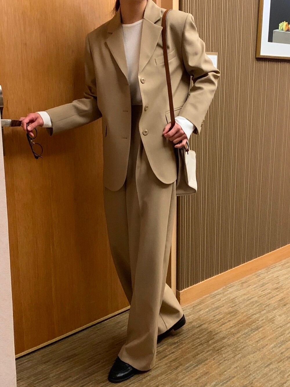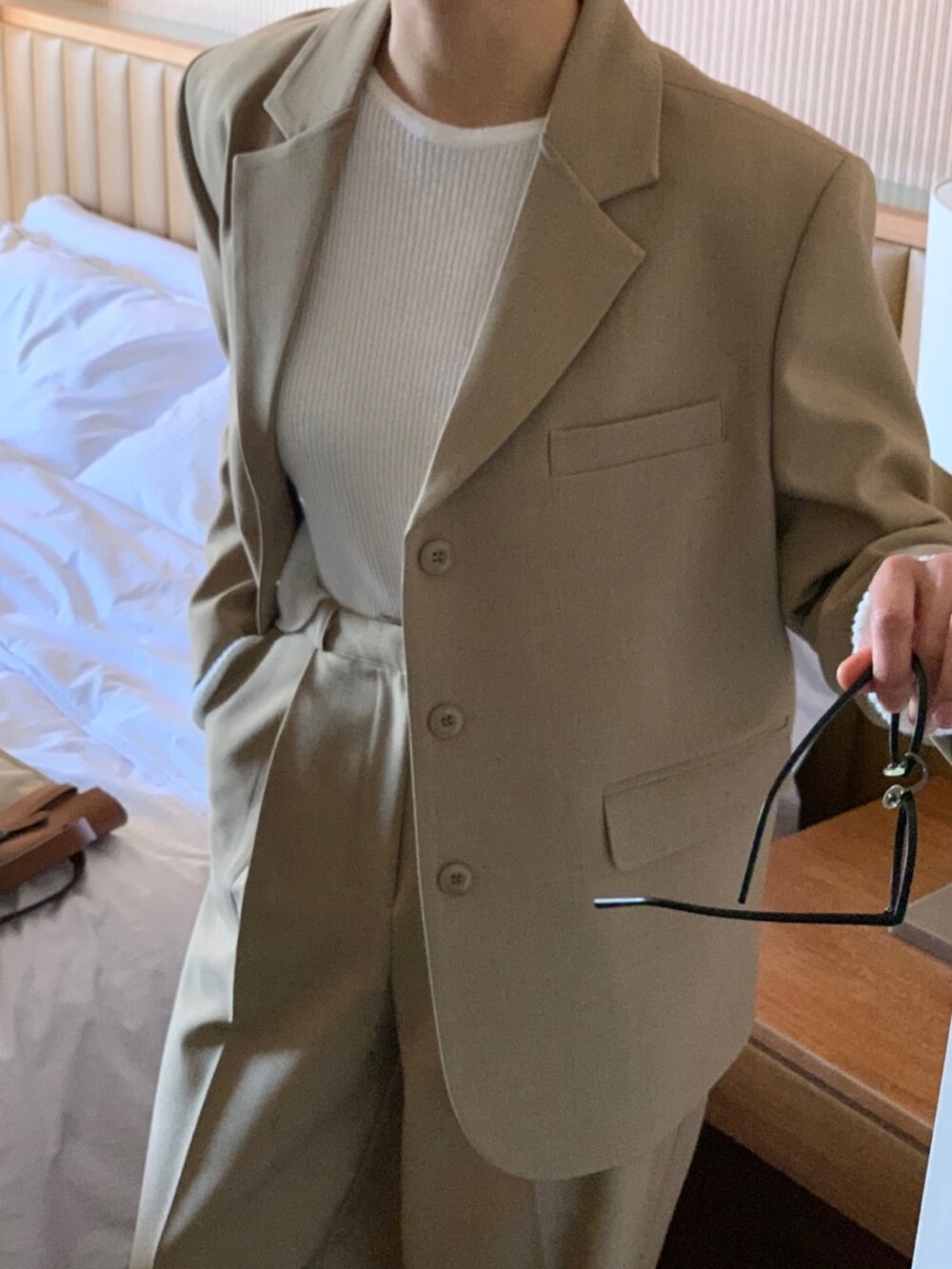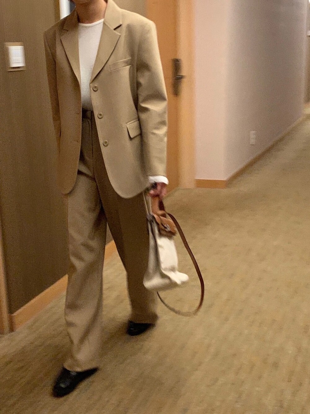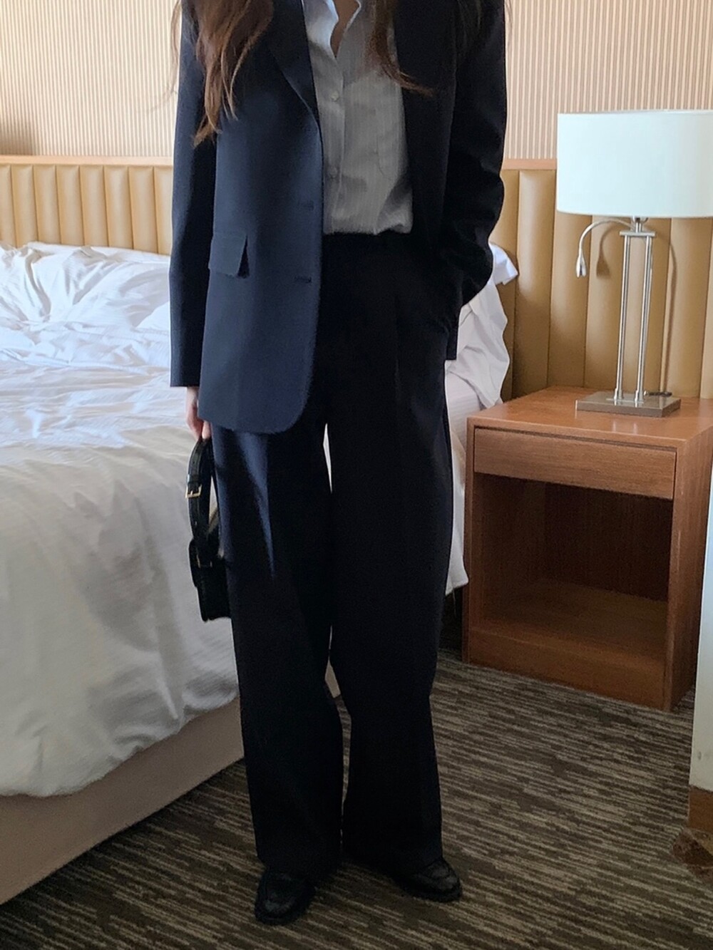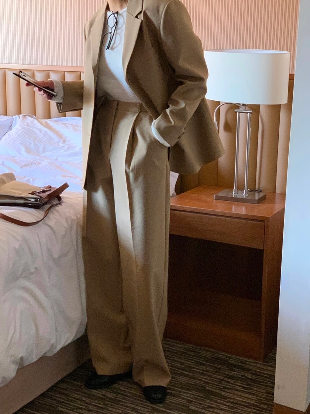 두께감 보통 / 비침 없음 / 신축성 약간 / 안감 없음