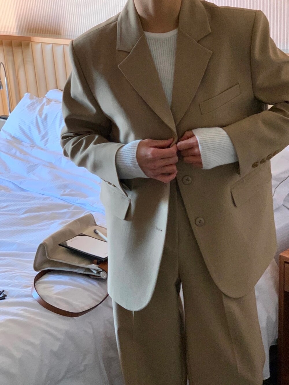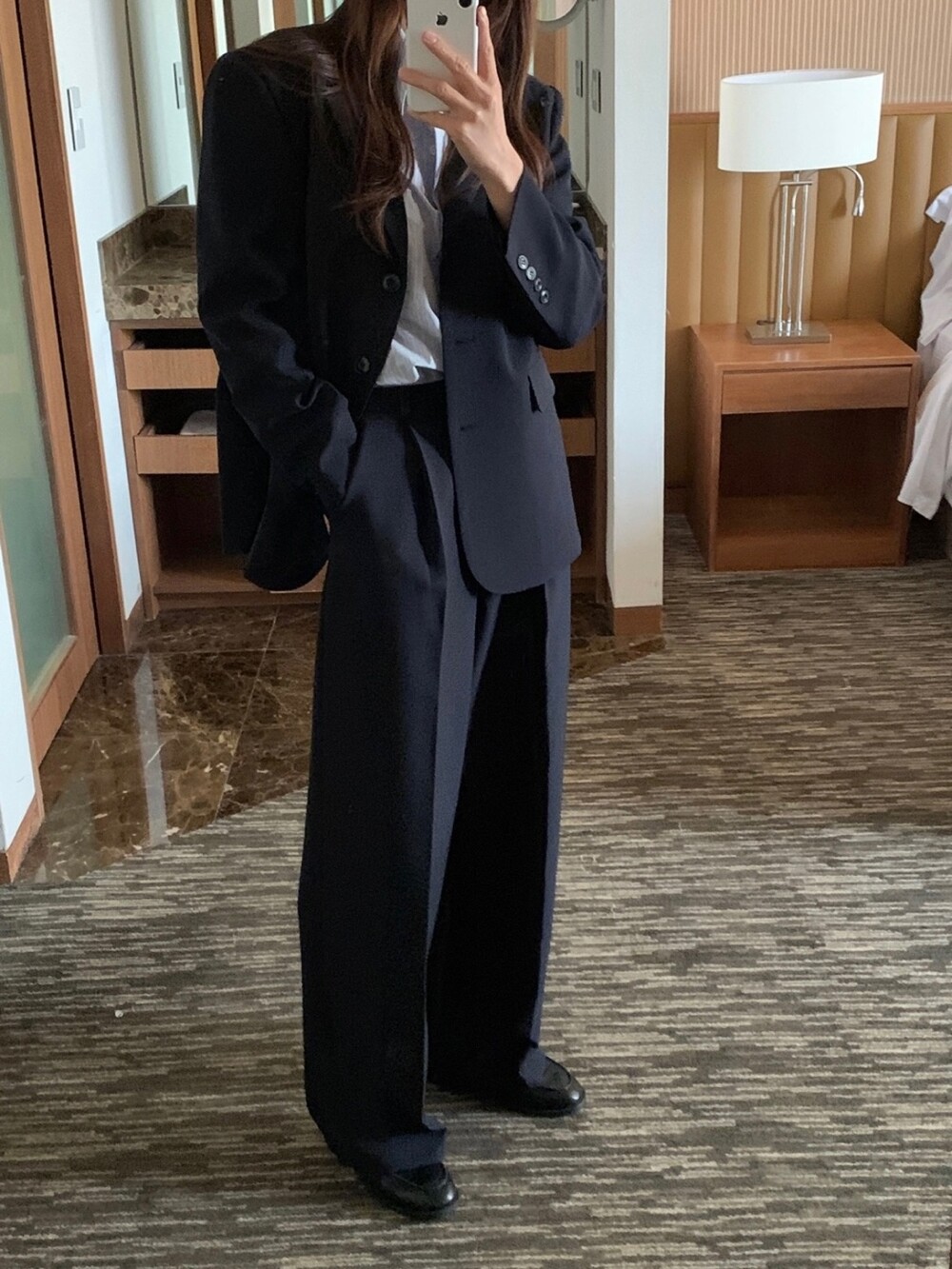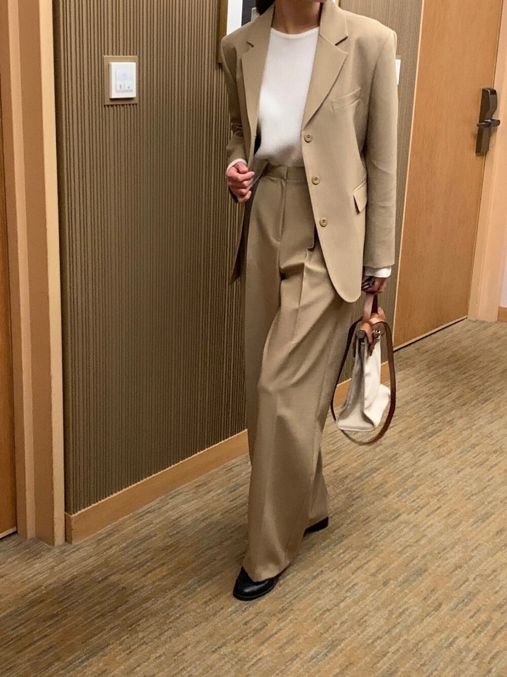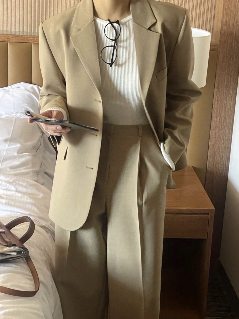 두께감 보통 / 비침 없음 / 신축성 약간 / 안감 없음