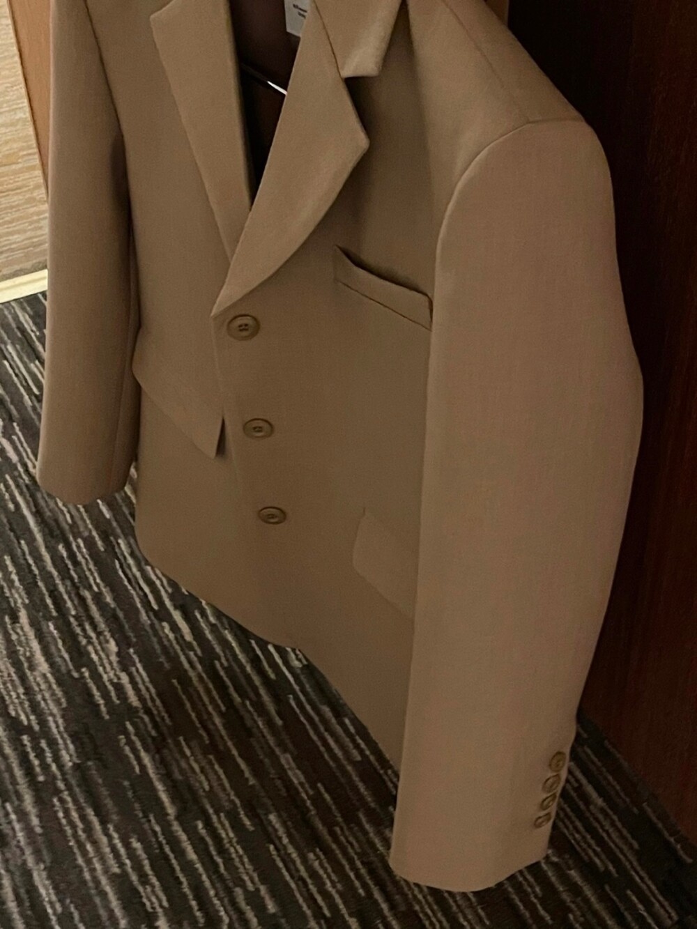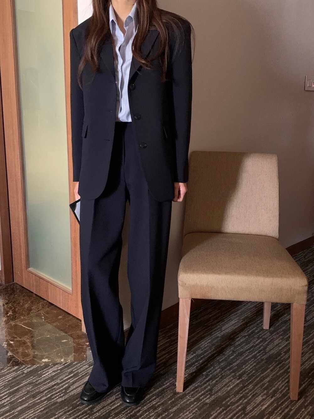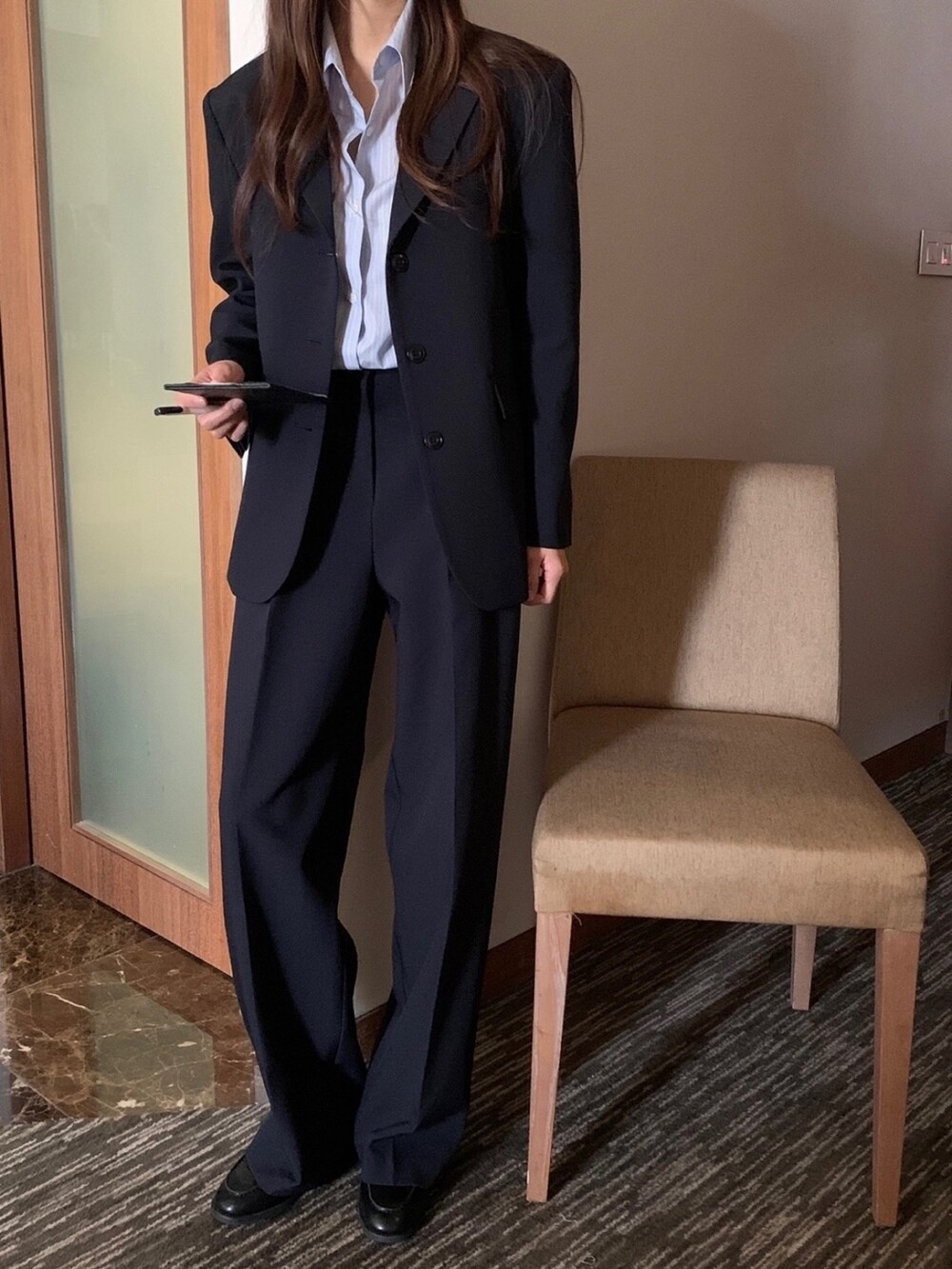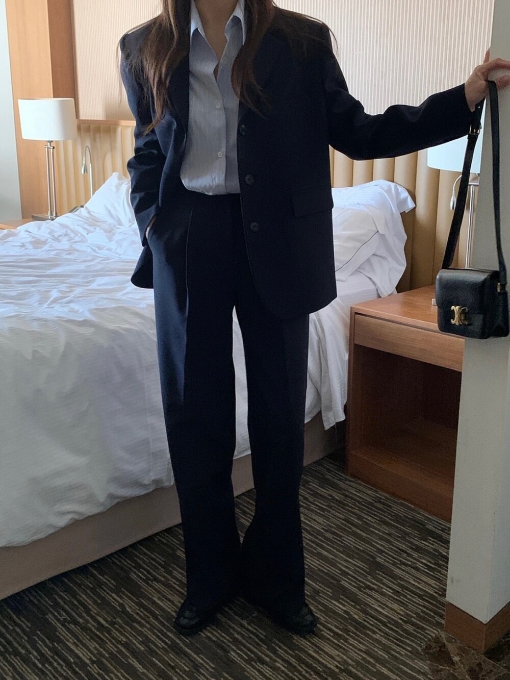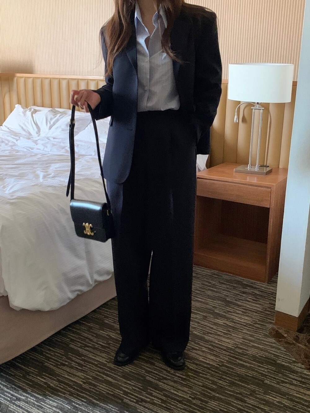 두께감 보통 / 비침 없음 / 신축성 약간 / 안감 없음