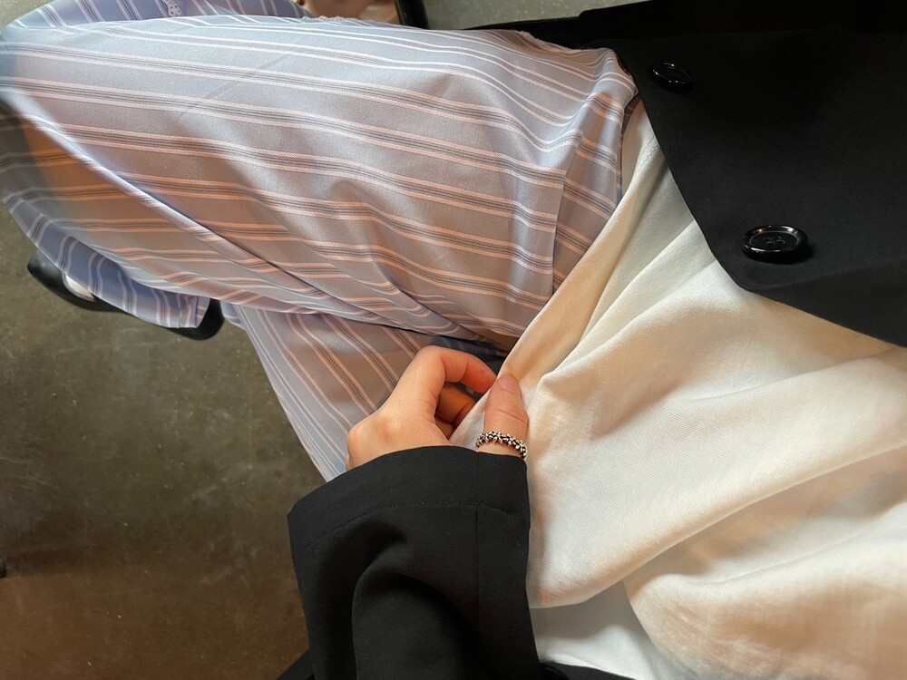 두께감 얇음 / 비침 약간 / 신축성 없음 / 안감 없음