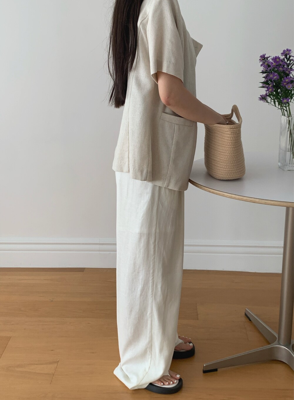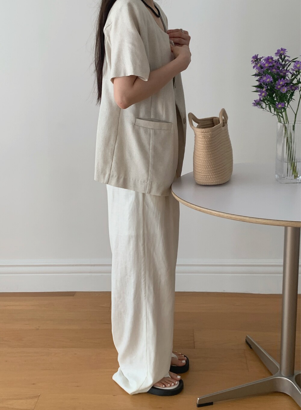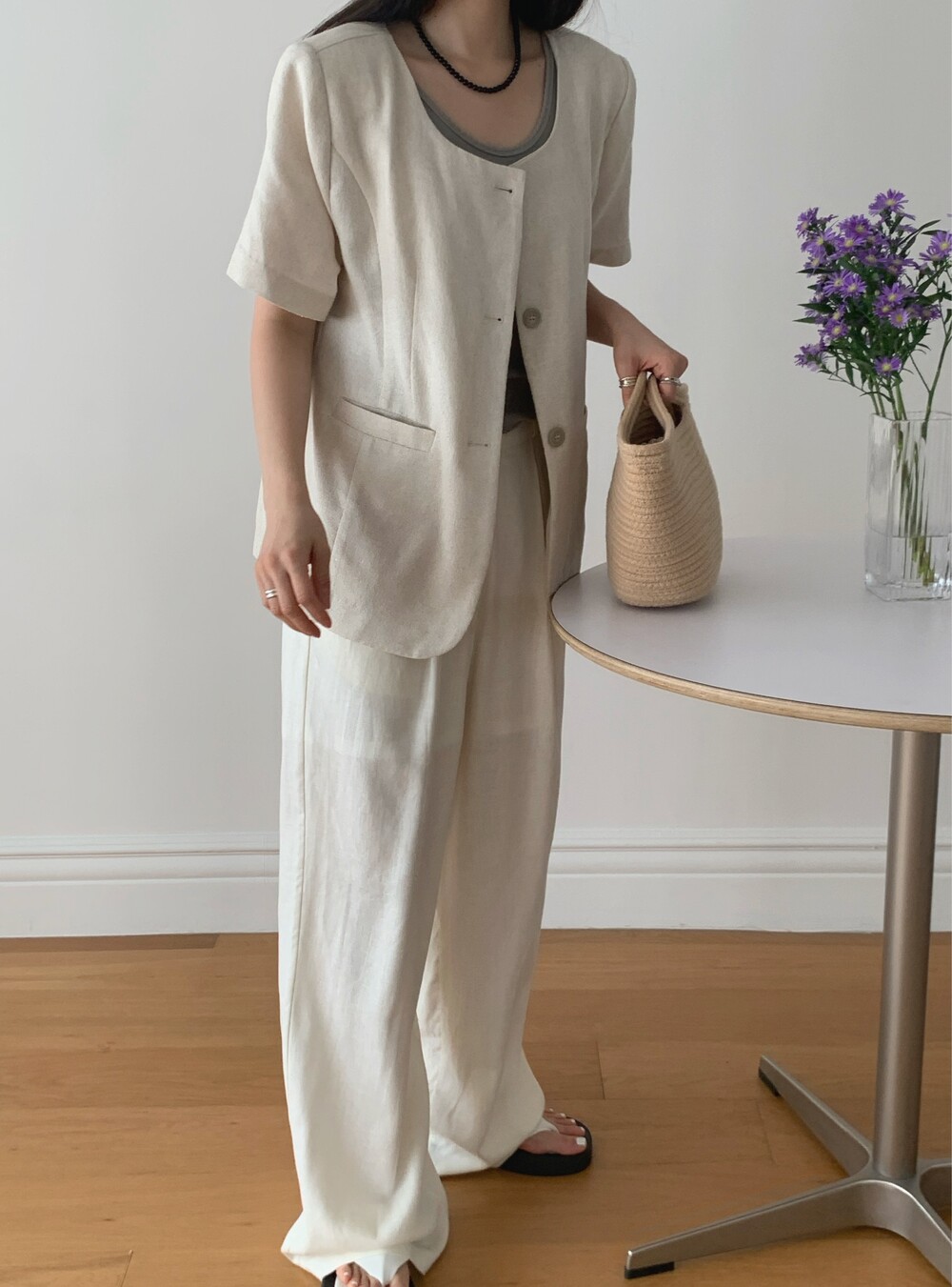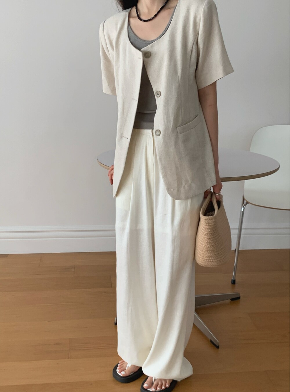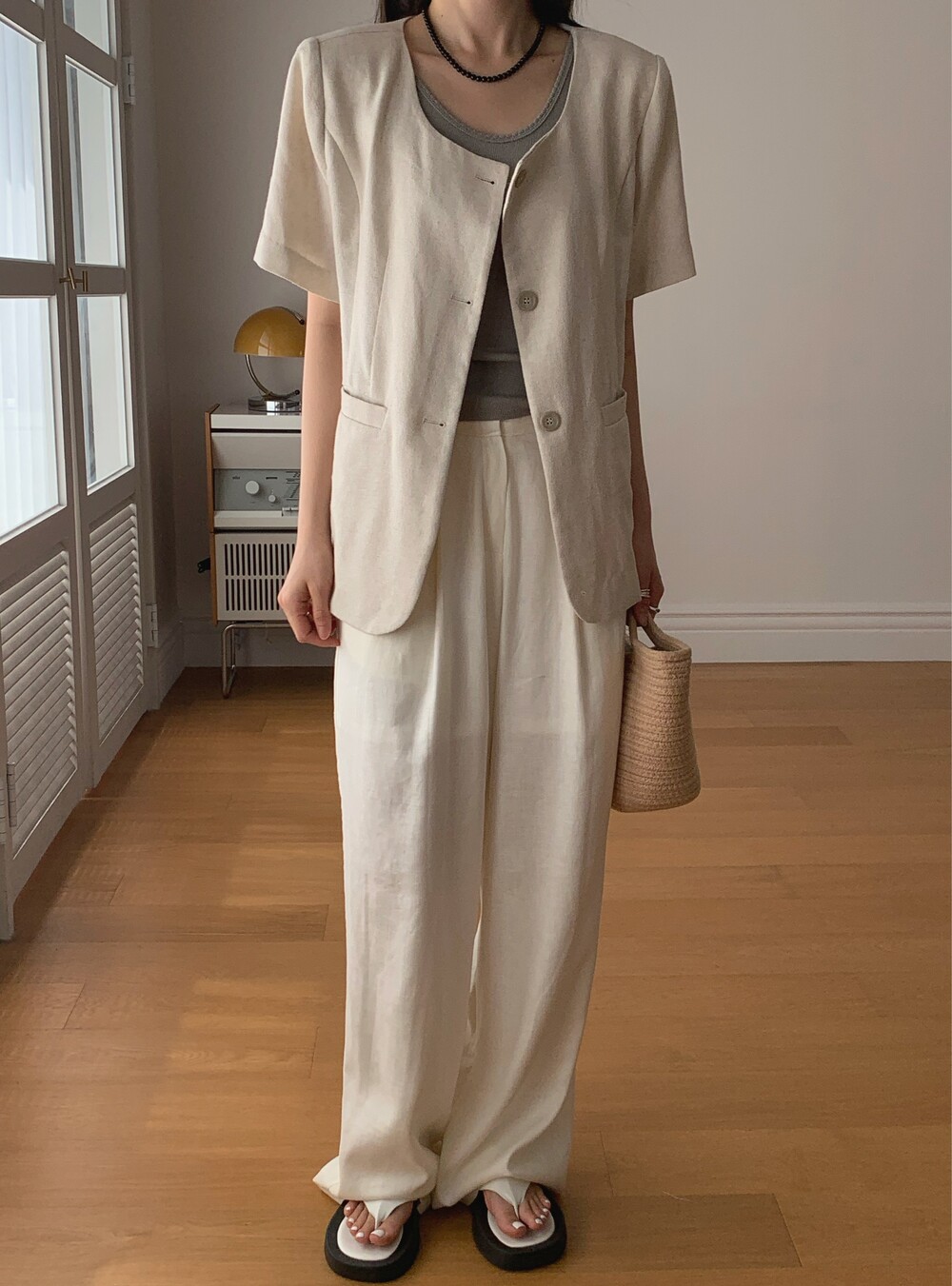 두께감 얇음 / 비침 없음 / 신축성 없음 / 안감 없음 / 어깨패드 있음