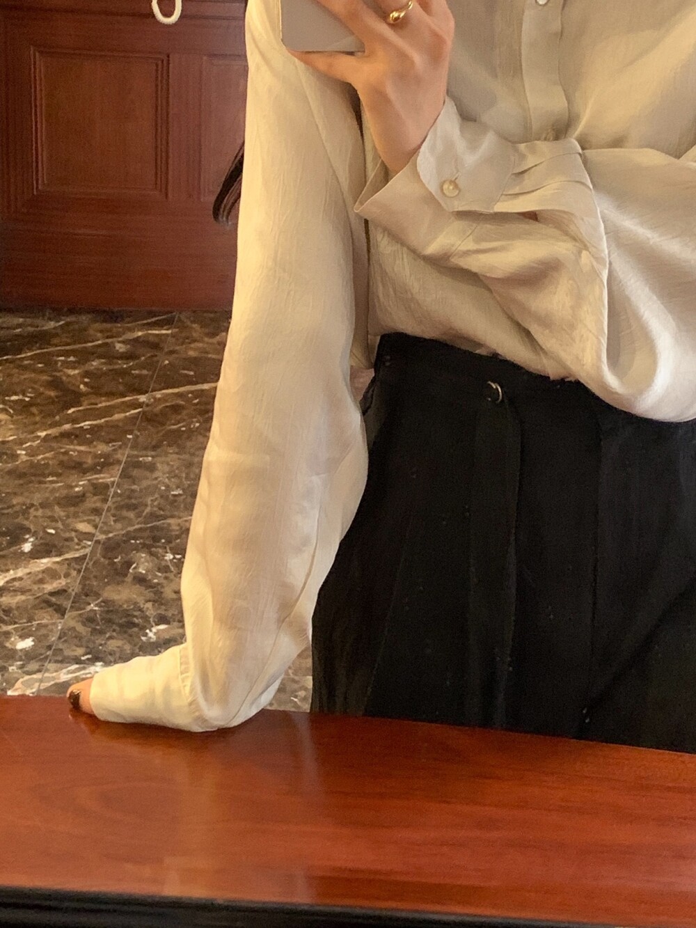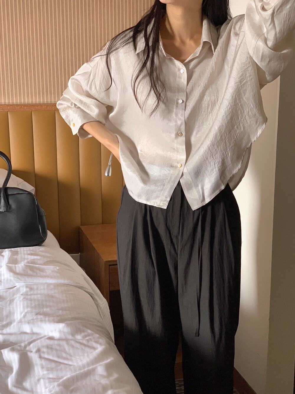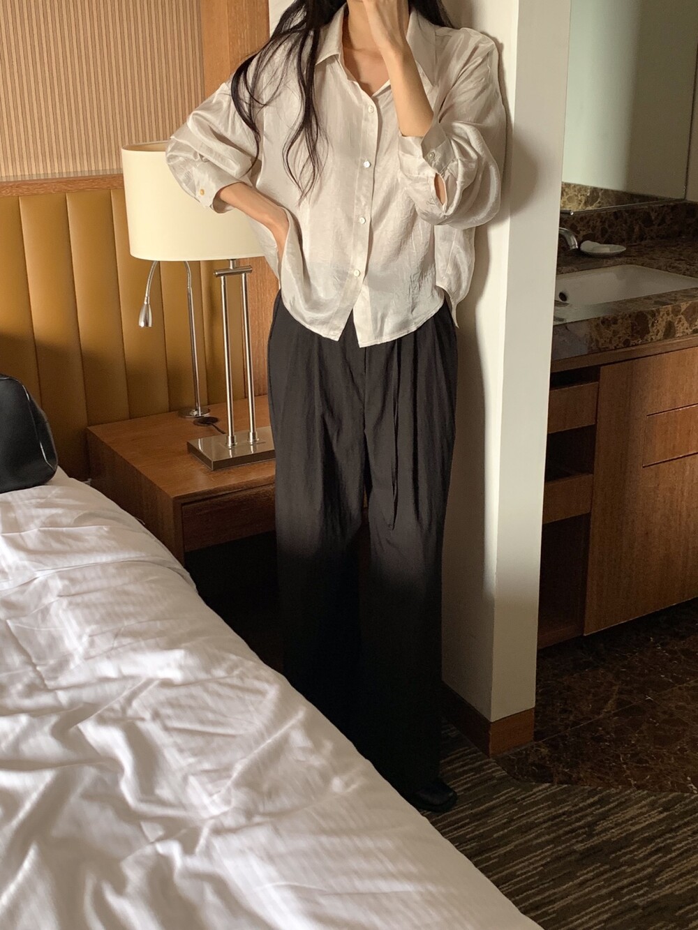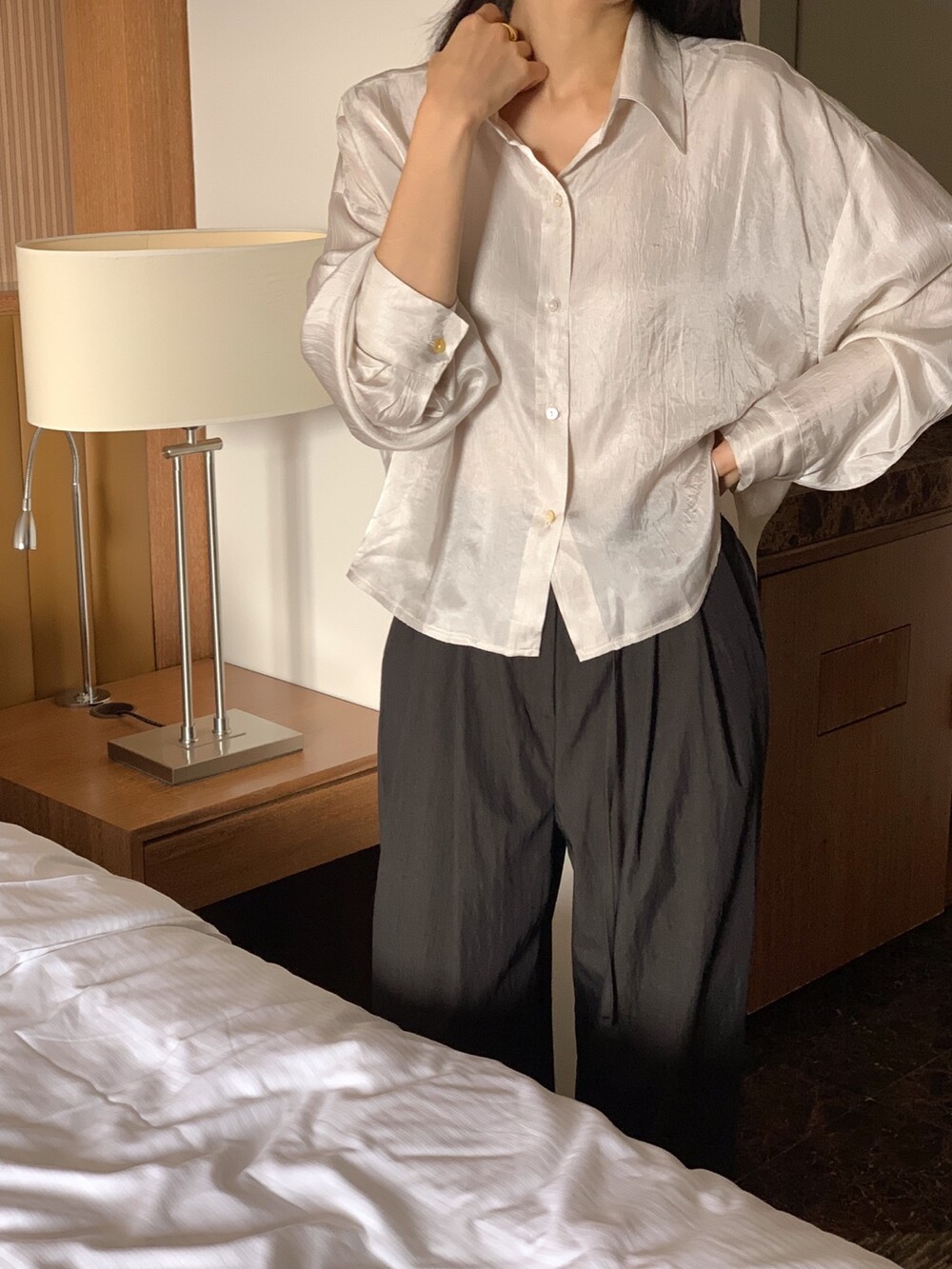 두께감 얇음 / 비침 있음 / 신축성 없음 / 안감 없음