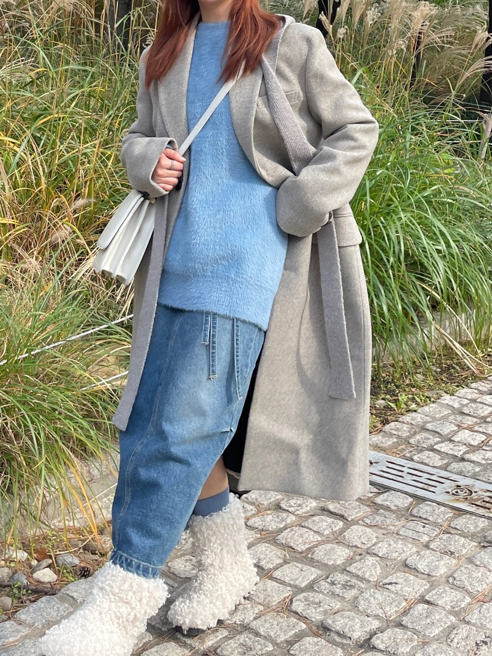 L 어깨 50cm / 가슴둘레 56cm / 암홀 23cm / 소매길이 63cm / 총장 113cm