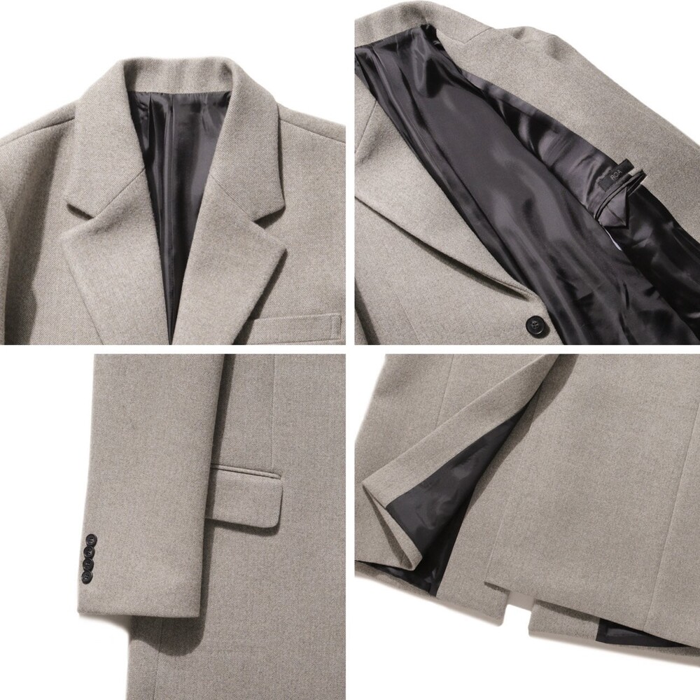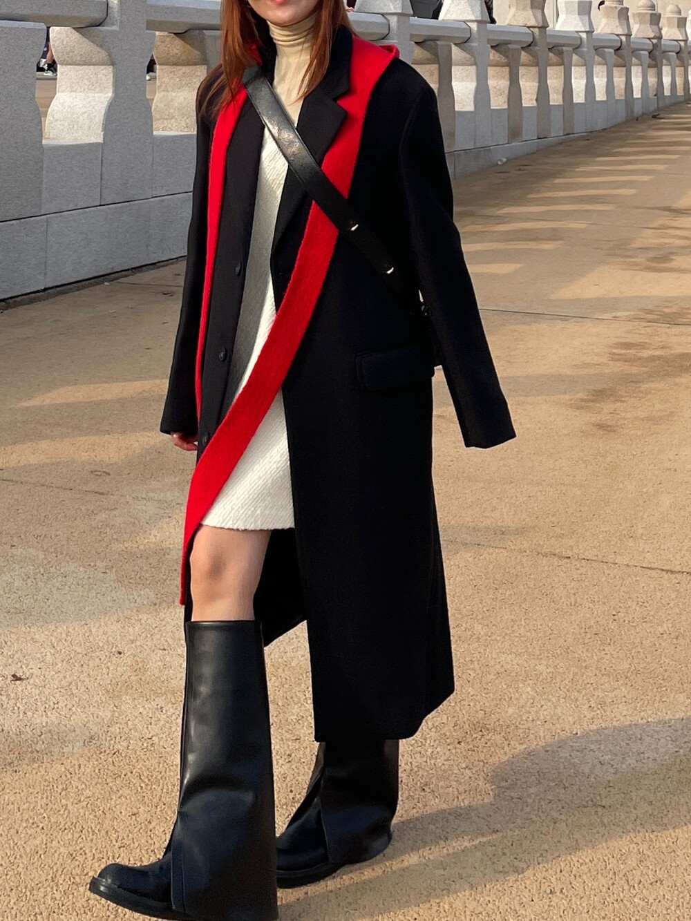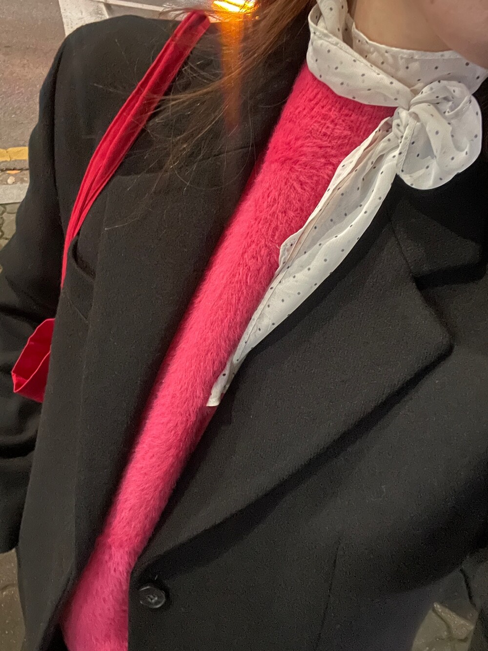 두께감 두꺼움 / 비침 없음 / 신축성 없음 / 안감 있음 / 어깨패드 없음