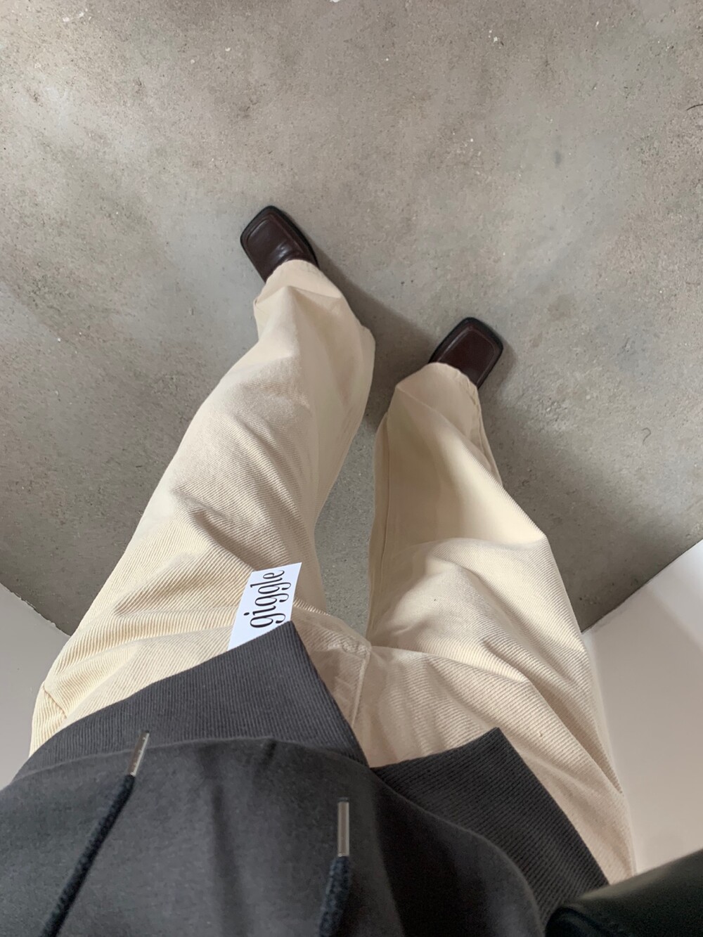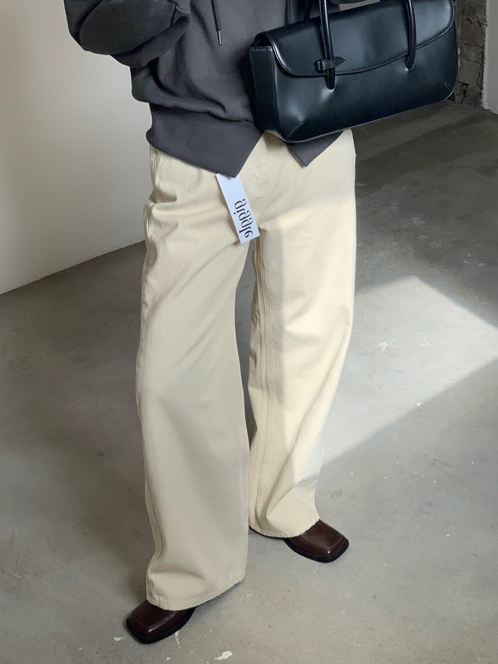 두께감 보통 / 비침 없음 / 신축성 약간 / 안감 없음