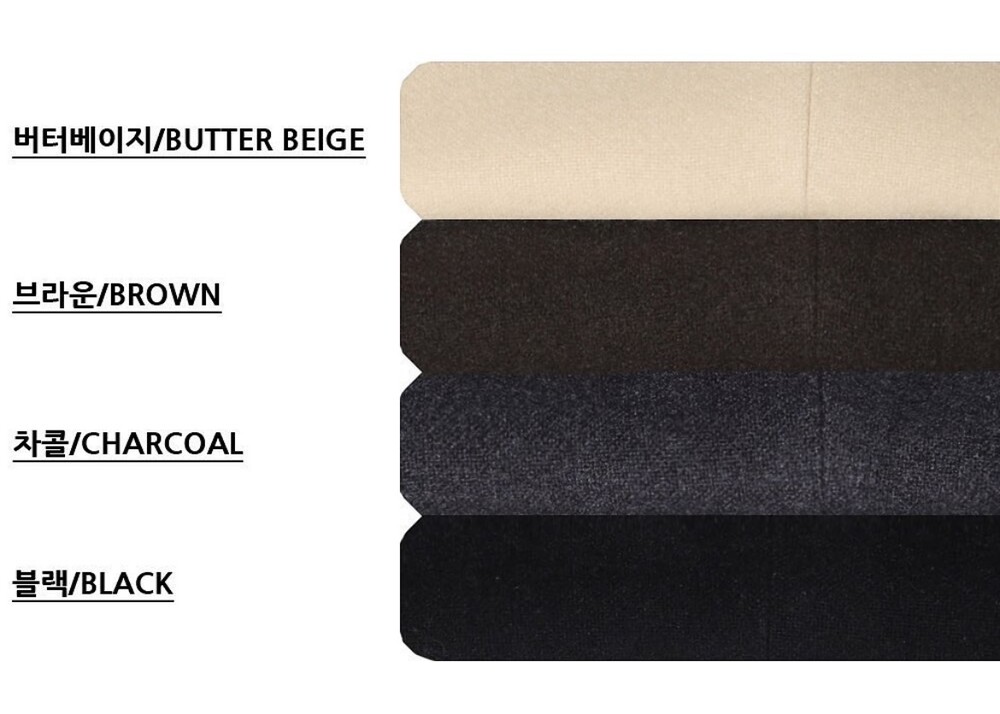 두께감 도톰함 / 비침 없음 / 신축성 약간 / 안감 없음
