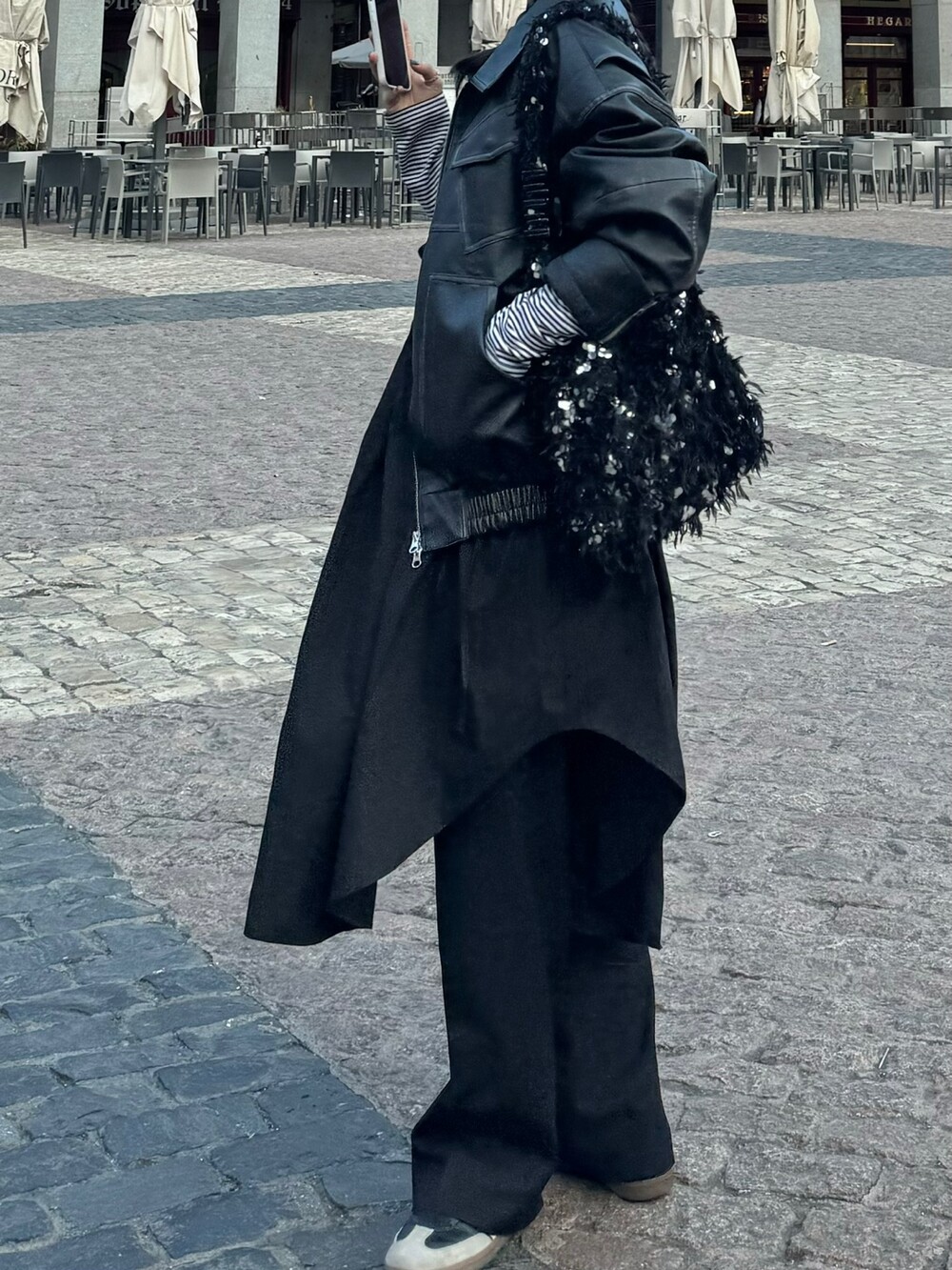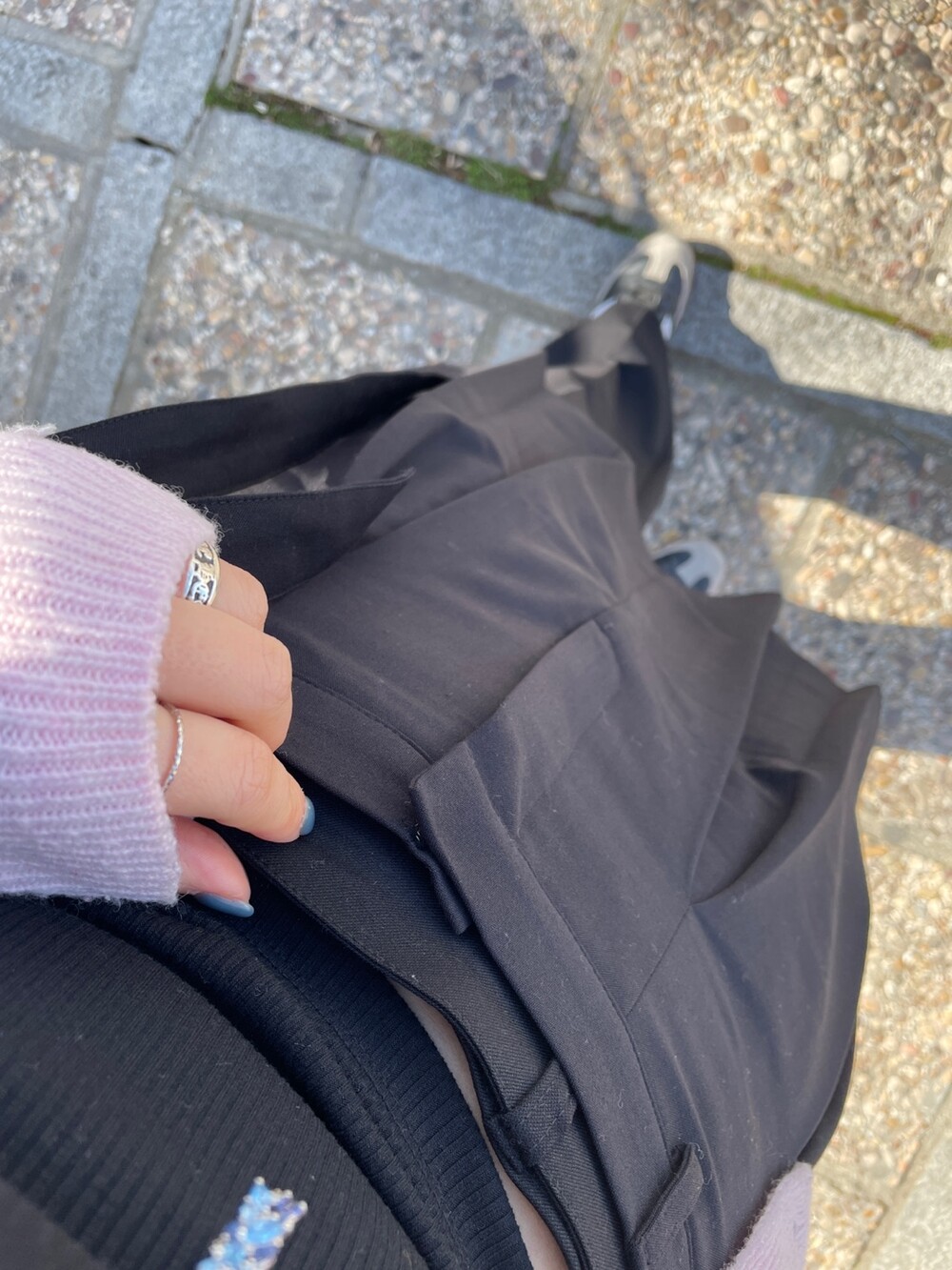 두께감 보통 / 비침 없음 / 신축성 아주약간 / 안감 없음