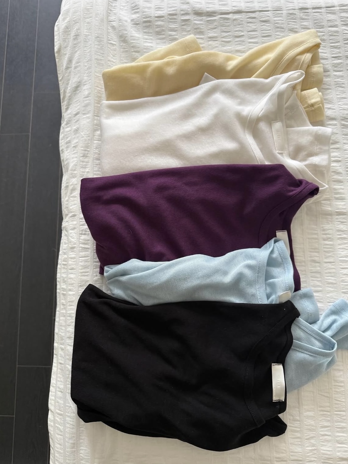 두께감 얇음 / 비침 있음 / 신축성 보통 / 안감 없음