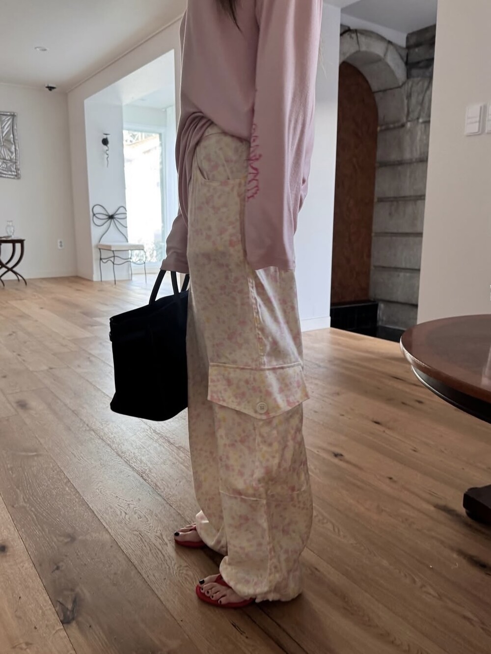 두께감 얇음 / 비침 아주약간 / 신축성 없음 / 안감 없음